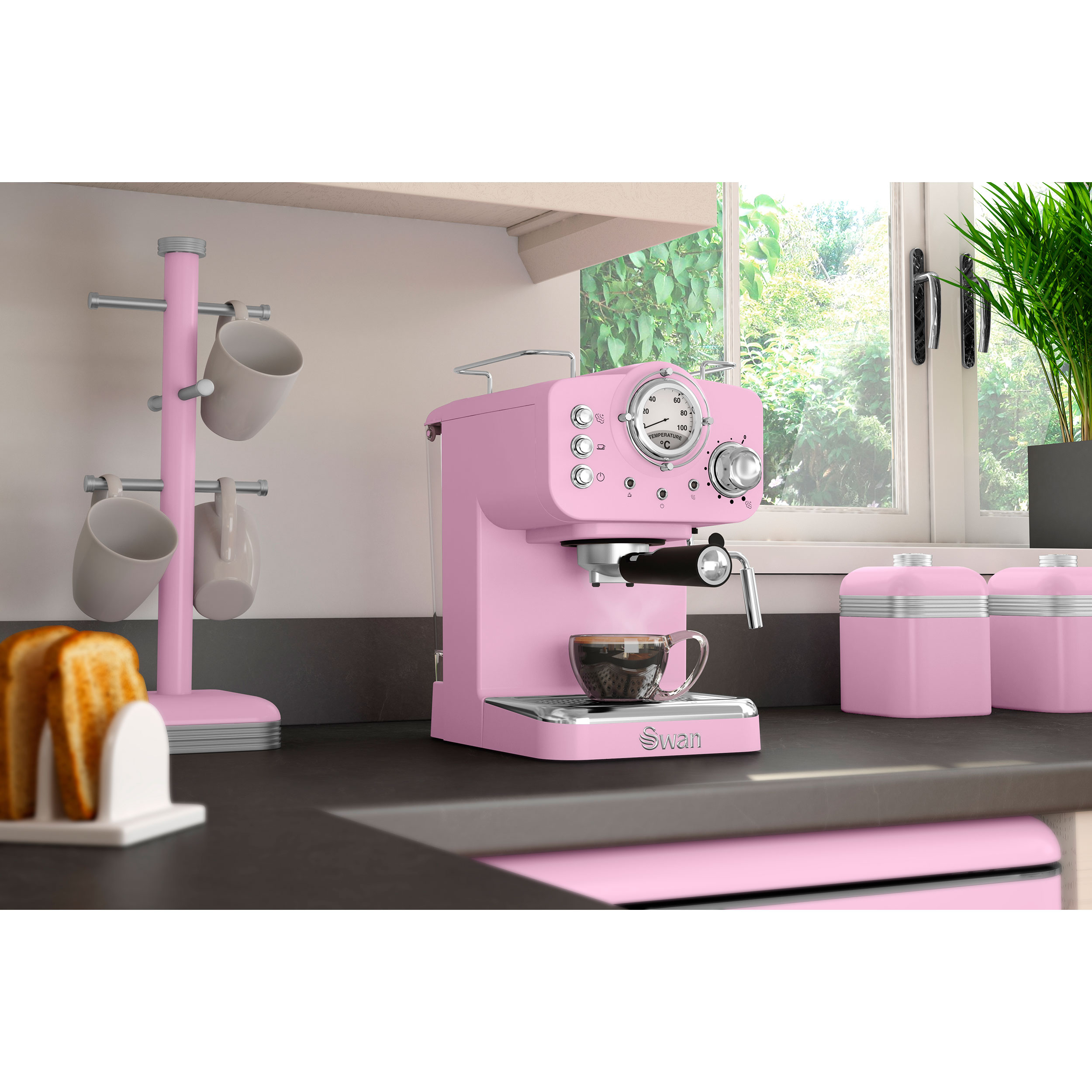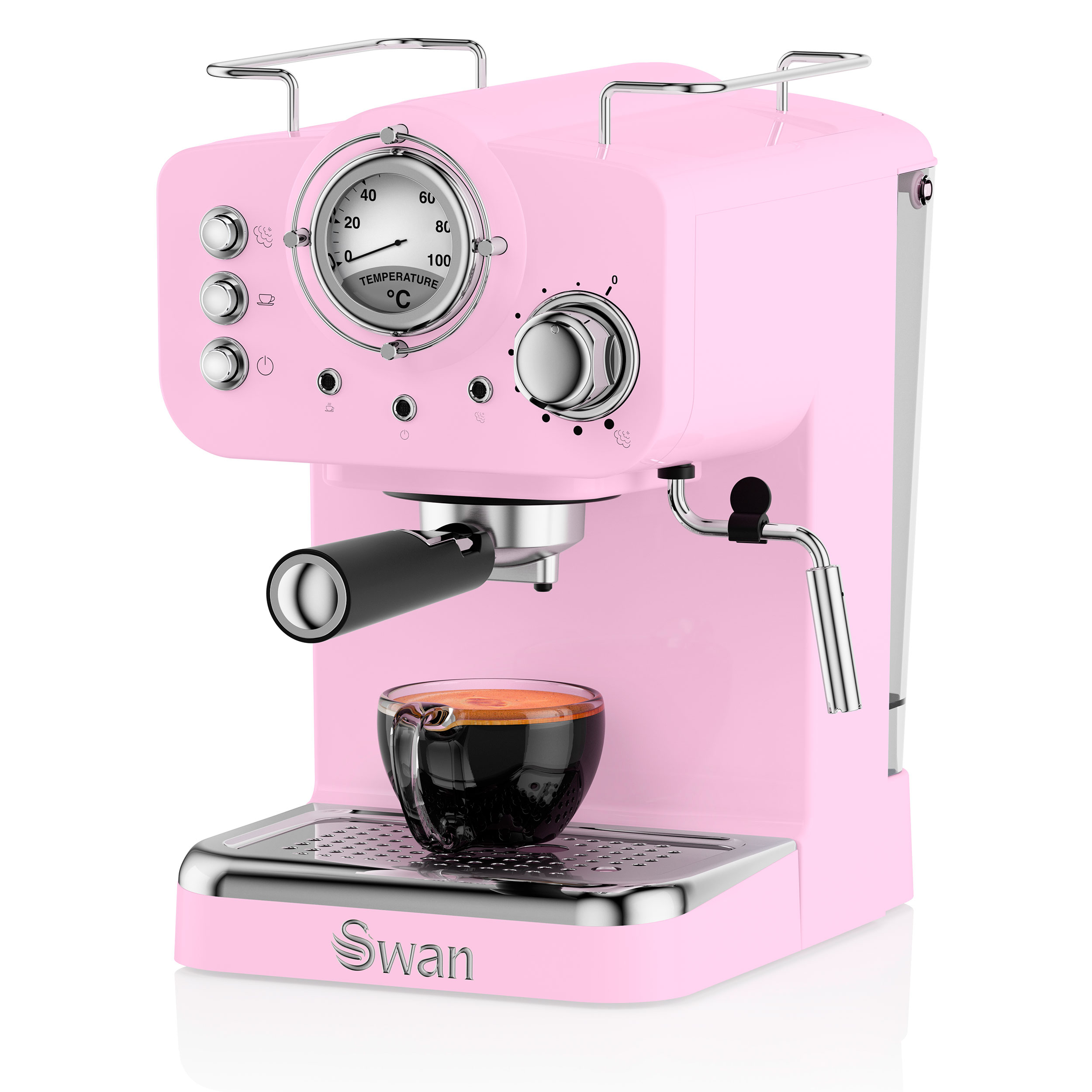 Retro Machine à Café 15 Bars, Espresso, Cappuccino Buse Vapeur à Lait, Vintage 1100 Rose SWANSK22110PN
