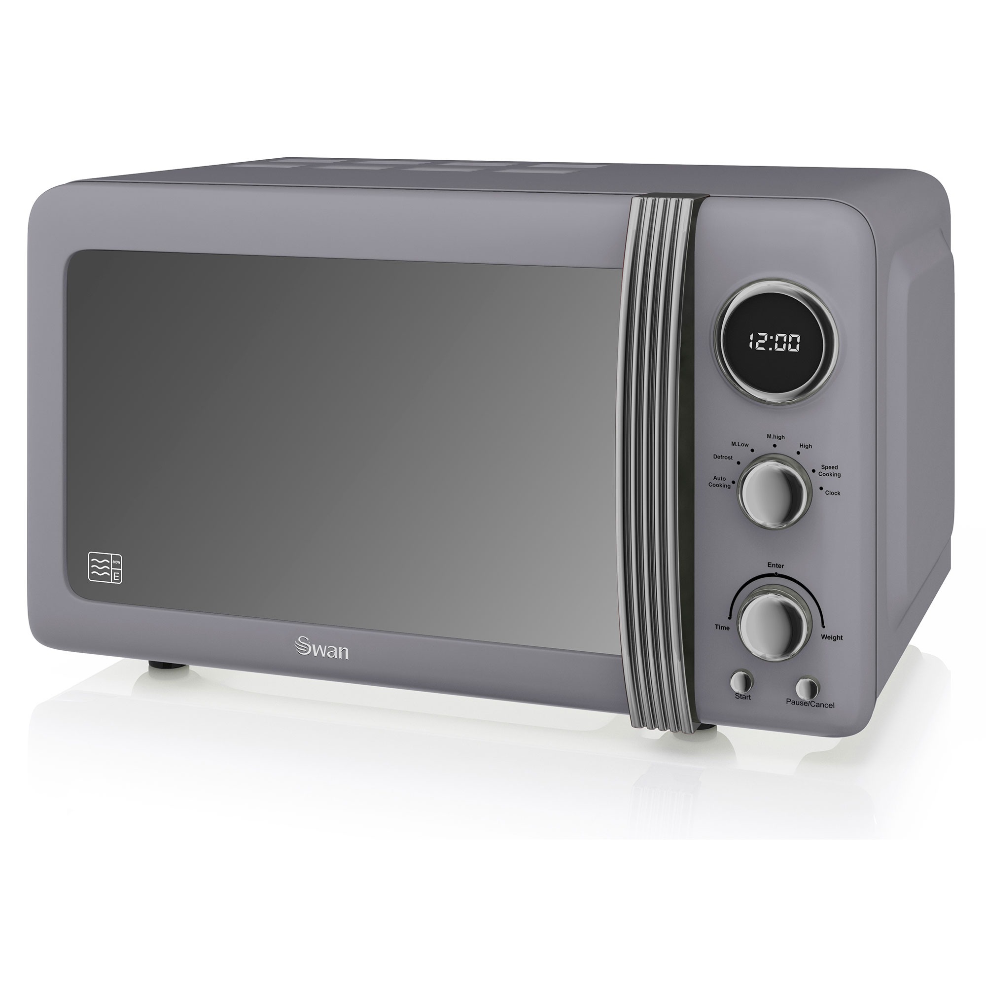 Retro Set Petit-Déjeuner Bouilloire 1,8L Grille-Pain 2 Tranches Micro-ondes 20L 850 Gris SWANSTRP2070GRNE