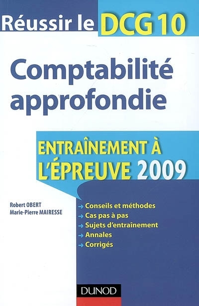 S'entraîner avec Réussir le DCG 10 un ouvrage spécialement conçu pour le succès à l'examen + Des fiches méthodo : comment se préparer, comment aborder l'examen et tout connaître de l'épreuve. + Un cas «pas à pas» qui décortique un sujet type pour apprendre à décrypter un énoncé, éviter les pièges, comprendre ce qui est attendu du candidat et rédiger la meilleure copie possible. + Quatre cas d'entraînement, construits sur le modèle des sujets de l'examen, avec leur corrigé détaillé et leurs critères d'évaluation : durée, notation, niveau de difficulté. + Le sujet de la session 2008, commenté et corrigé, pour mieux se tester et se mettre en situation d'examen. = Un ouvrage d'entraînement à l'épreuve progressif et complet pour assurer la réussite au DCG.