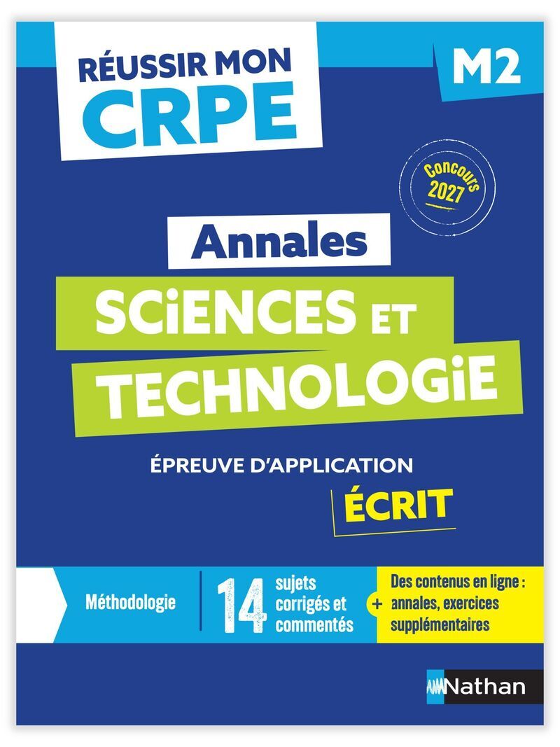 Découvrez les annales de l'épreuve d'admissibilité Sciences et technologie - M2 - Écrit 2027. Cet ouvrage permet de préparer et réussir le Concours de Professeur des Écoles (CRPE).