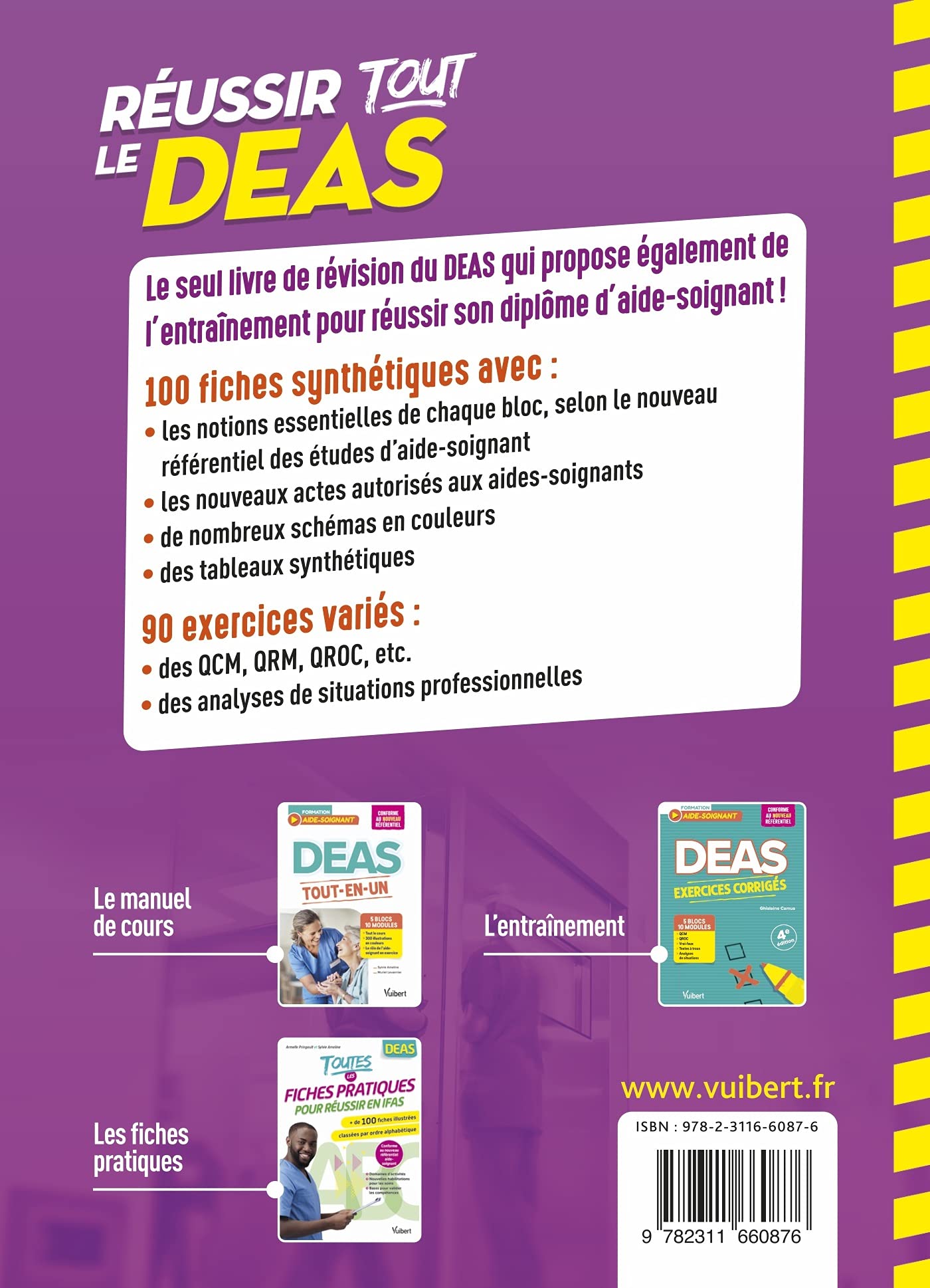 | Libellé | Réussir tout le DEAS en 100 fiches et 90 entraînements - 5 blocs de compétences - 10 modules / Conforme au nouveau référentiel aide-soignant (Broché) |