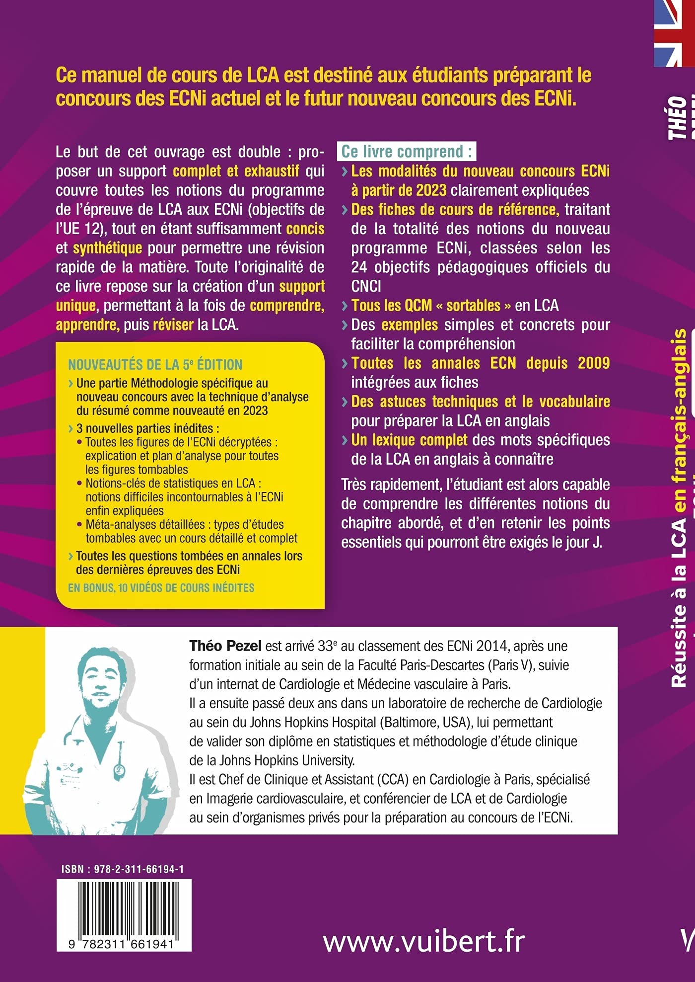 Réussite à la LCA continue d’offrir un support unique, complet et exhaustif couvrant toutes les notions du programme de LCA aux ECNi, en anglais et en français. Il propose des fiches de cours de référence, classées selon les 24 objectifs pédagogiques officiels du CNCI, avec tous les QCM « sortables » en LCA ainsi qu’un lexique complet de mots spécifiques à la LCA en anglais.