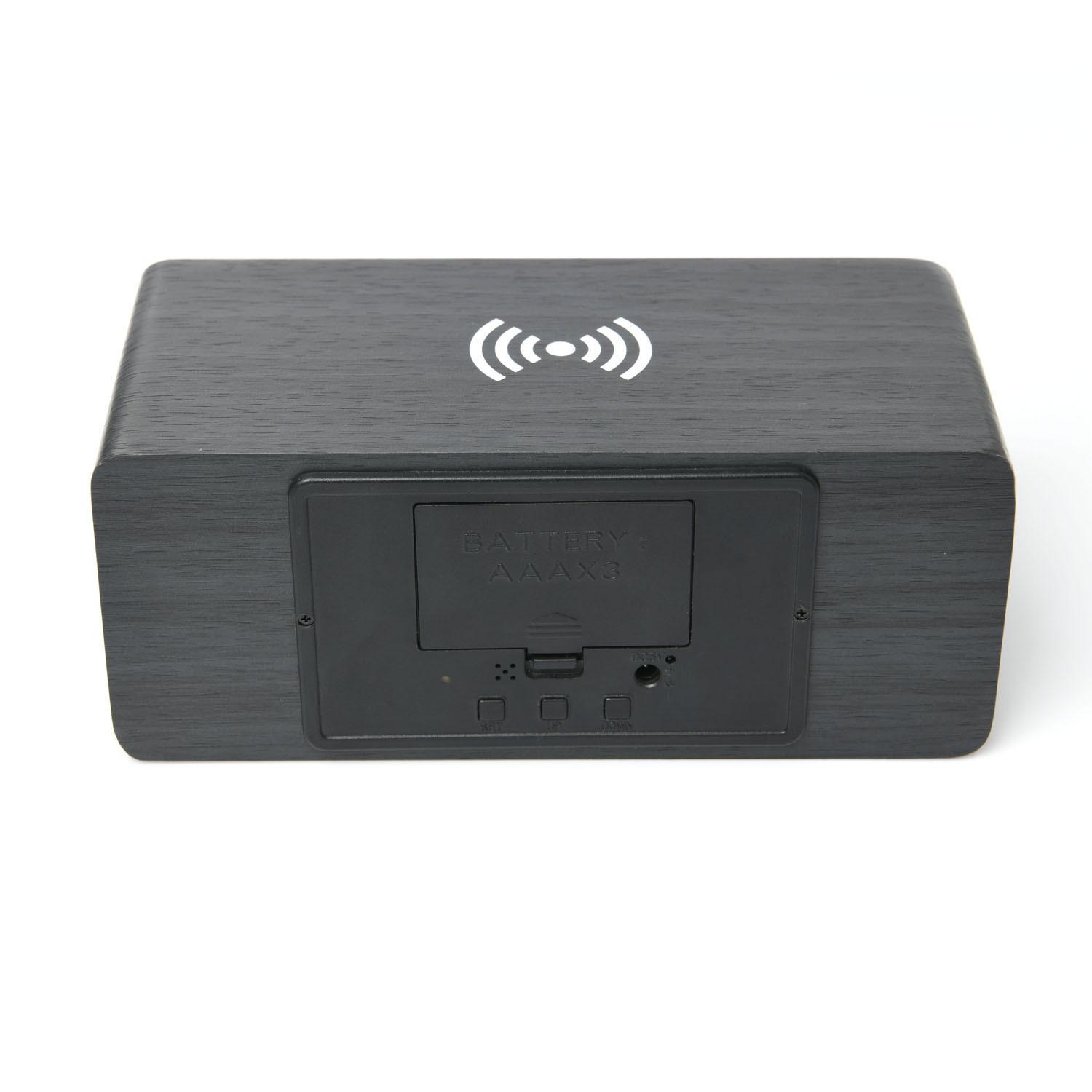 Chargeur sans fil QI pour votre téléphone portable et une belle horloge numérique en bois 2-EM-1! En plus du temps, de la température et de la date, ce réveil offre également la possibilité de charger votre smartphone. Chargement sans fil Connectez l'alarme à la chaîne et placez le téléphone dessus. Votre smartphone commencera à se charger immédiatement. Notez que la fonction de charge sans fil ne fonctionne que lorsque l'horloge est connectée au courant. Affichage d'affichage Par défaut, le temps et la température ambiante sont indiqués dans le cadran. Pour afficher la date, appuyez une fois sur le bouton définir. La date changera automatiquement pour afficher l'heure. De cette façon, vous avez toujours toutes les informations à votre portée. Option d'épargne énergétique Vous pouvez choisir d'avoir l'écran toujours visible, mais il y a aussi une position où l'affichage est éteint et s'allume uniquement lorsqu'il est activé par le son ou le toucher sur le haut ou les côtés du réveil. Après 10 secondes, il s'efface à nouveau pour qu'il puisse dormir complètement dans l'obscurité. 3 fois d'alarme Il peut configurer jusqu'à trois temps d'alarme différents et également avoir la fonction de répétition. Caractéristiques: Couleur en bois de noyer Dimensions: 15cm x 7cm x 7cm. Chargement mobile sans fil Affichage du temps de 12/24 heures Indication de température: 0-50 Cº Affichage de la date 3 fois une alarme possible Fonction de répétition automatique Option pour l'affichage activé par le son / tactile Fonctionne avec l'électricité ou 3 batteries AAA (non incluses) Comprend un adaptateur noir 5V et un câble USB (120 cm.) Comprend le lithium CR2032 pour faire face aux coupes de puissance à court terme.