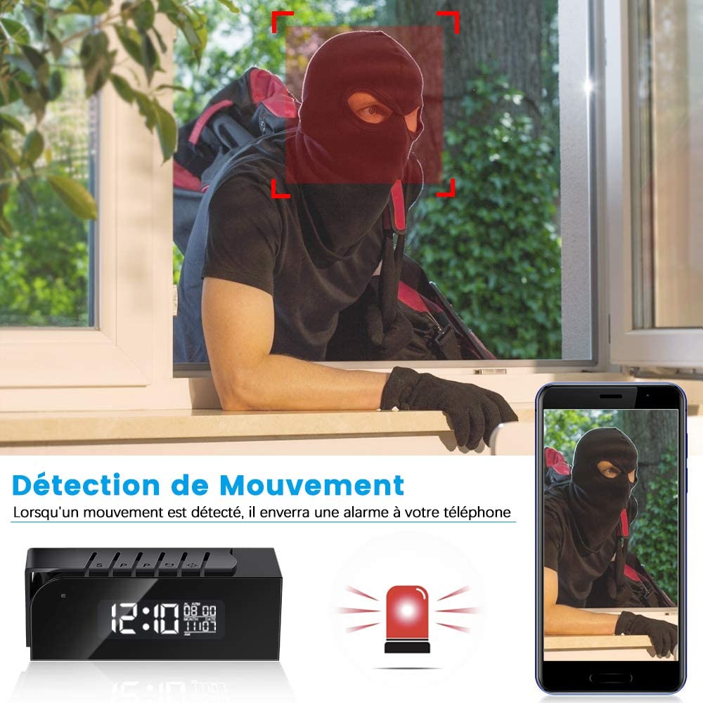 Réveil Mini Caméra Espion Wifi Full HD Surveillance Vision Nocturne Noir YONIS