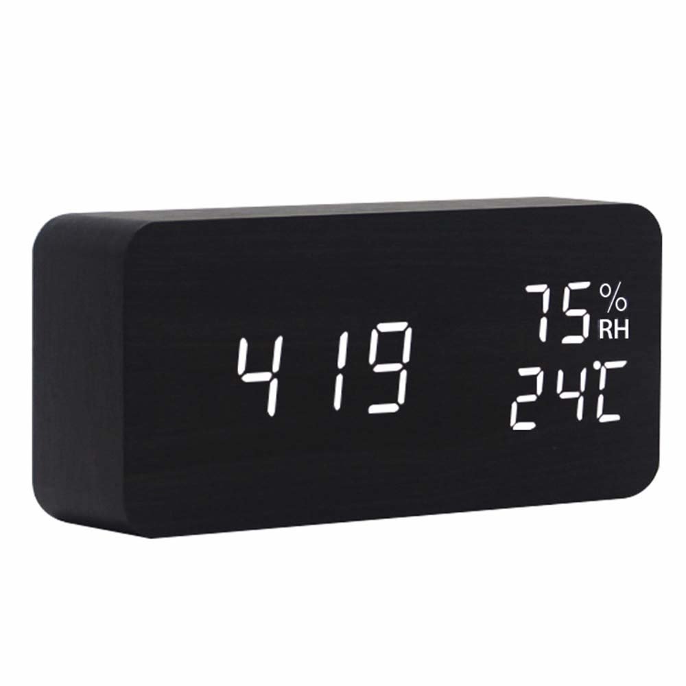 Design convivial et élégant : il y a 3 boutons à l'arrière et aucun bouton à l'avant et sur les côtés, ce qui donne au réveil un design élégant et convivial à la fois. Fabriqué en matériau MDF avec une belle texture en bois et équipé d'un affichage lumineux LED blanc, le réveil convient aux environnements intérieurs tels que les cuisines, les chambres et les bureaux.