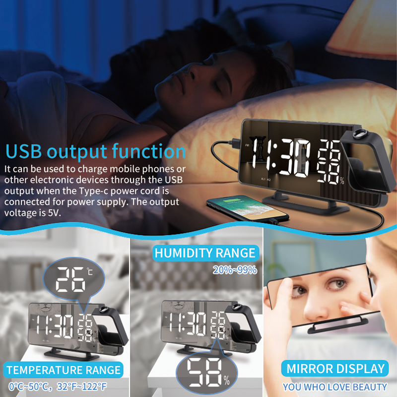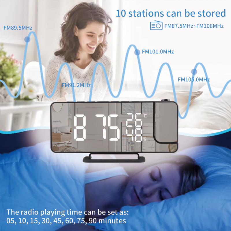 | Libellé | Réveil projecteur avec température Miroir/noir |