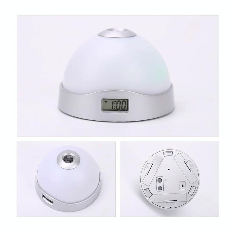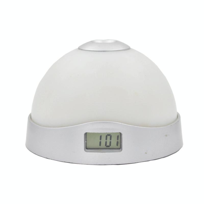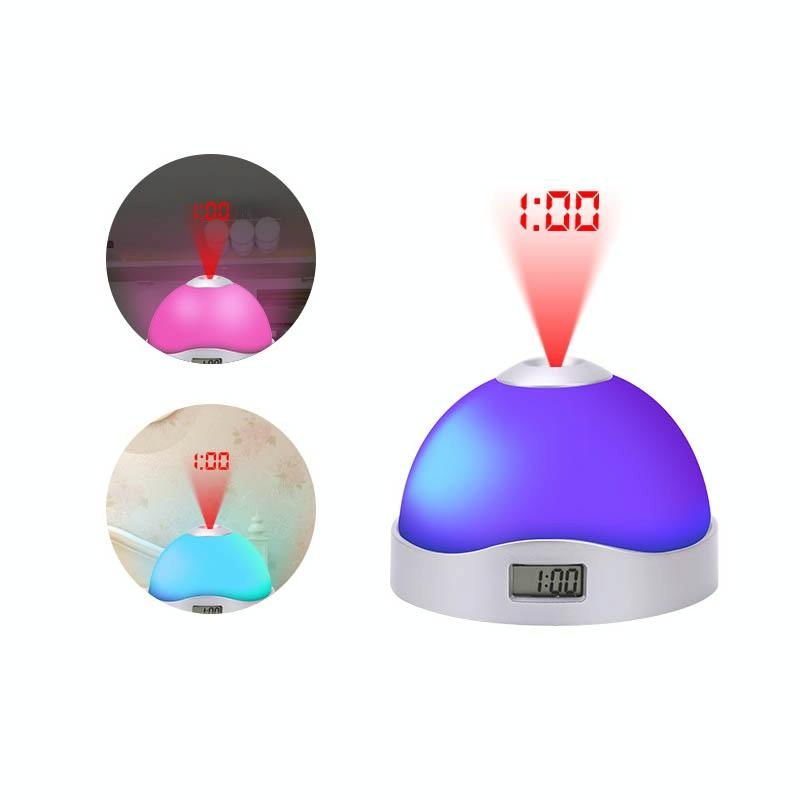 - Description : Affichage de l'heure sur l'écran LCD latéral. Horloge de projection, projection de l'heure (heure claire projetée sur le mur au-dessus la nuit). Changement de lumières colorées (un interrupteur en bas pour choisir marche / arrêt pour économiser l'énergie). Extinction automatique de la lumière de projection. Avec 3 boutons de projection en bas, vous pouvez projeter clairement l'heure au plafond d'un simple toucher la nuit. Très pratique