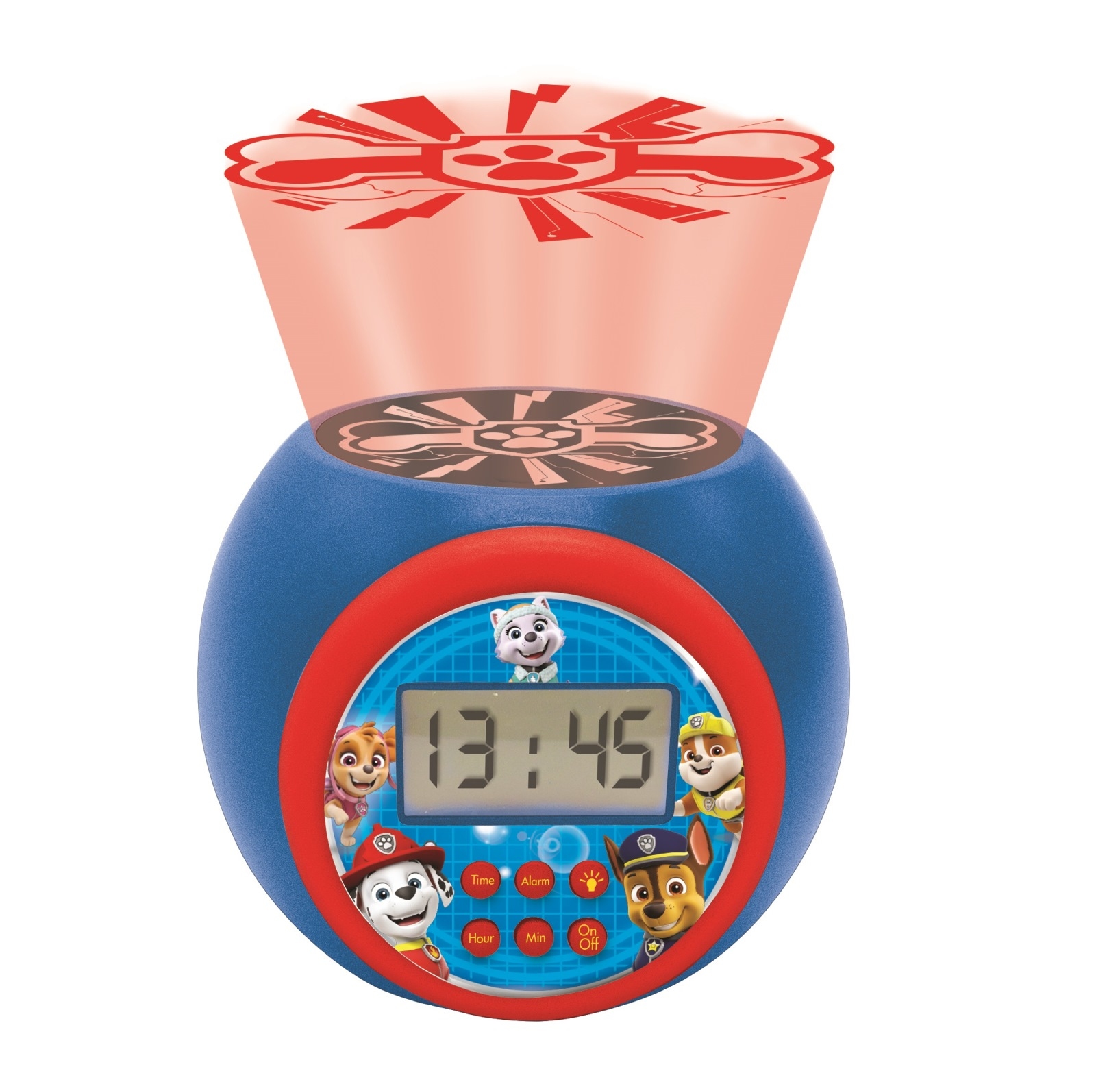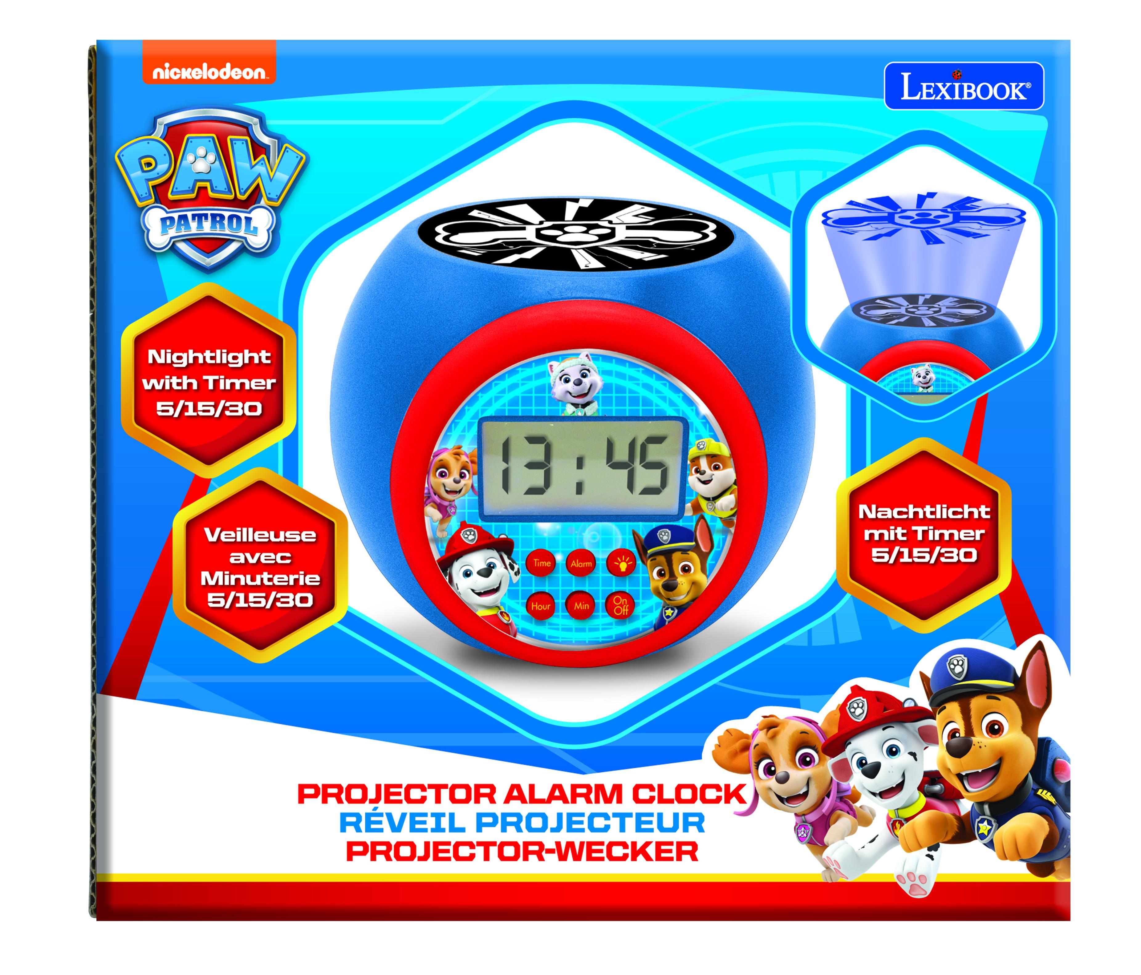 * Réveil projecteur pour enfant Pat Patrouille avec écran LCD avec rétro éclairage bleu. * Veilleuse avec projection du symbole Pat Patrouille au plafond en 3 couleurs pour créer une atmosphère incroyable la nuit ! Avec auto-extinction (5/10/15 mn). * Alarme avec fonction retardateur (snooze), pour se réveiller en douceur avec Marshall,Rubble,Chase,Stella et Everest. * Très intuitif avec des réglages faciles, des boutons larges et sûr pour les enfants à utiliser à tout moment * Alimentation : 3 piles AAA / LR03 (non incluses).