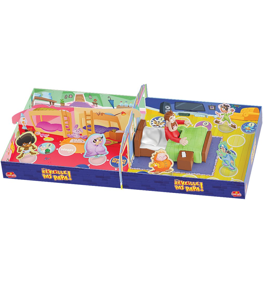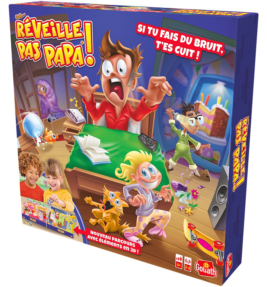 Papa est endormi dans son lit ! Va vite chercher le gâteau dans le réfrigérateur. Mais attention à ne pas le réveiller !