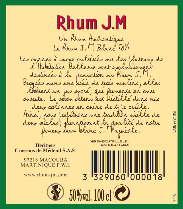 | Libellé | Rhum agricole JM - Martinique, 50 % vol. - 1 L |