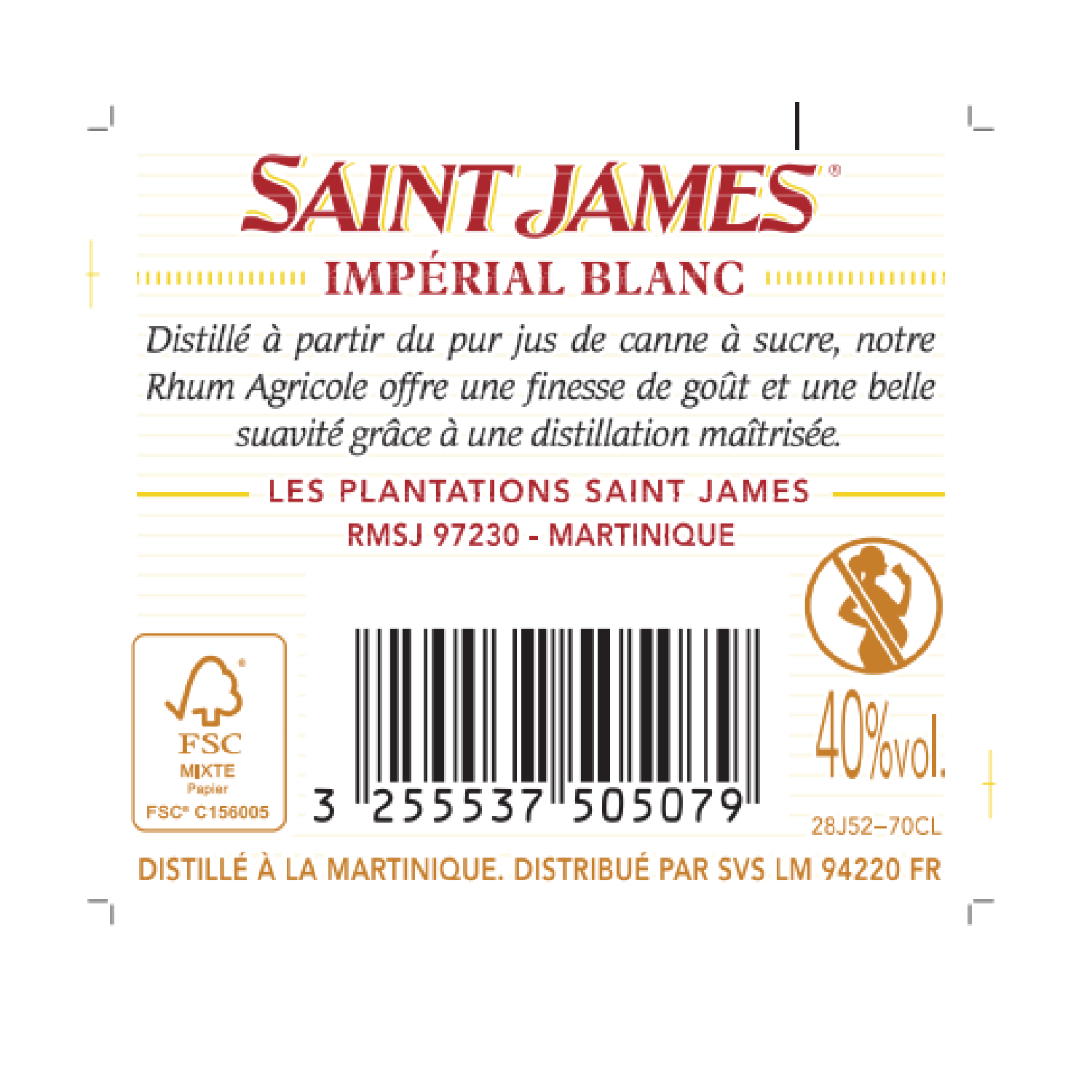 | Libellé | Rhum agricole St James Impérial - Martinique, 40% vol. - 70 cl |