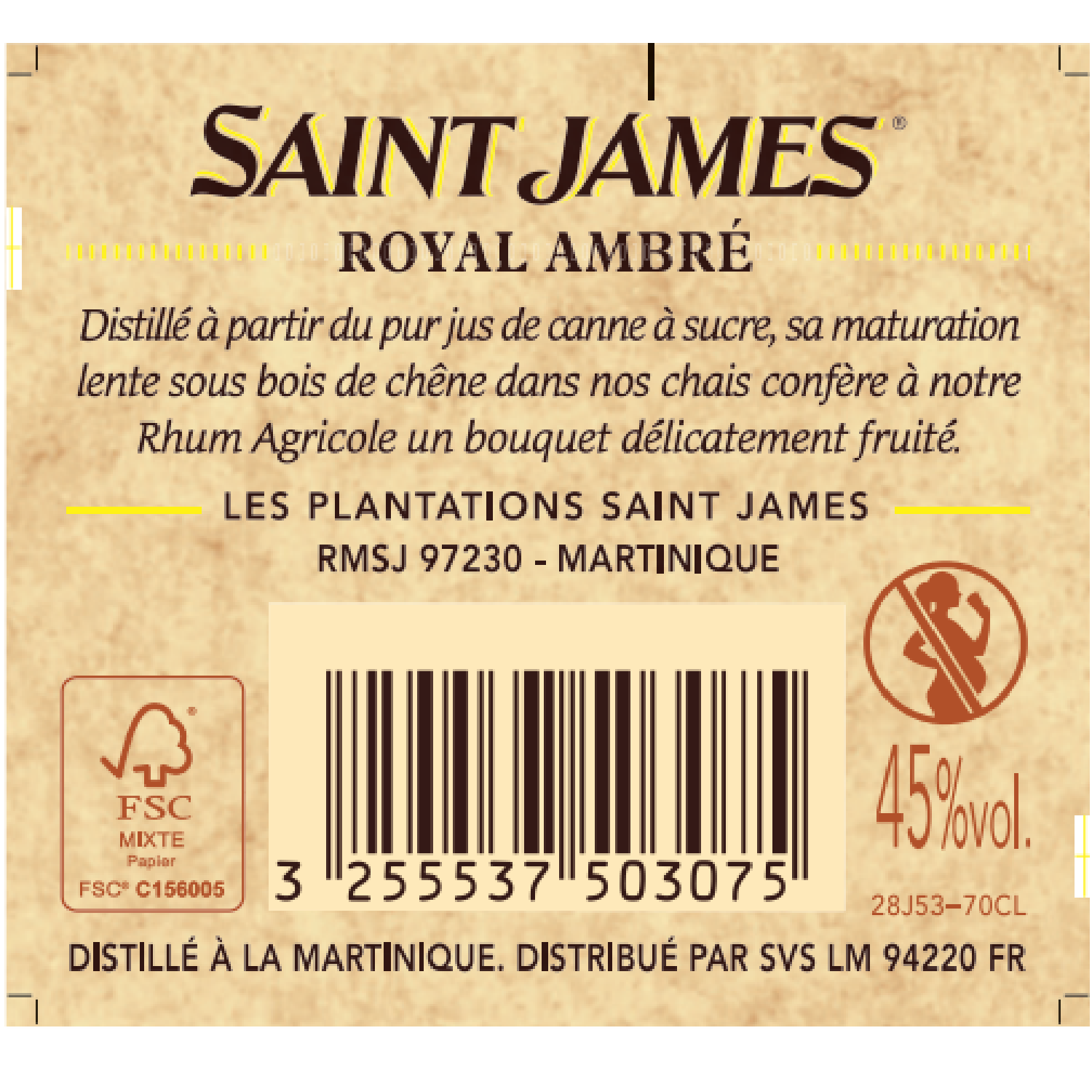 | Libellé | Rhum agricole St James Royal - Martinique, 45% vol. - 70 cl |