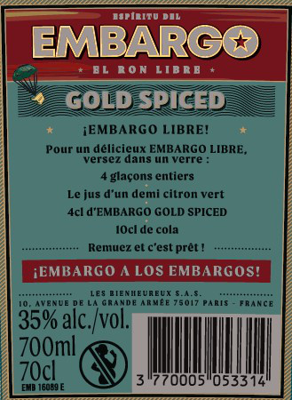 | Libellé | Rhum Embargo Gold Spiced - France, 35 % vol. - 70 cl |