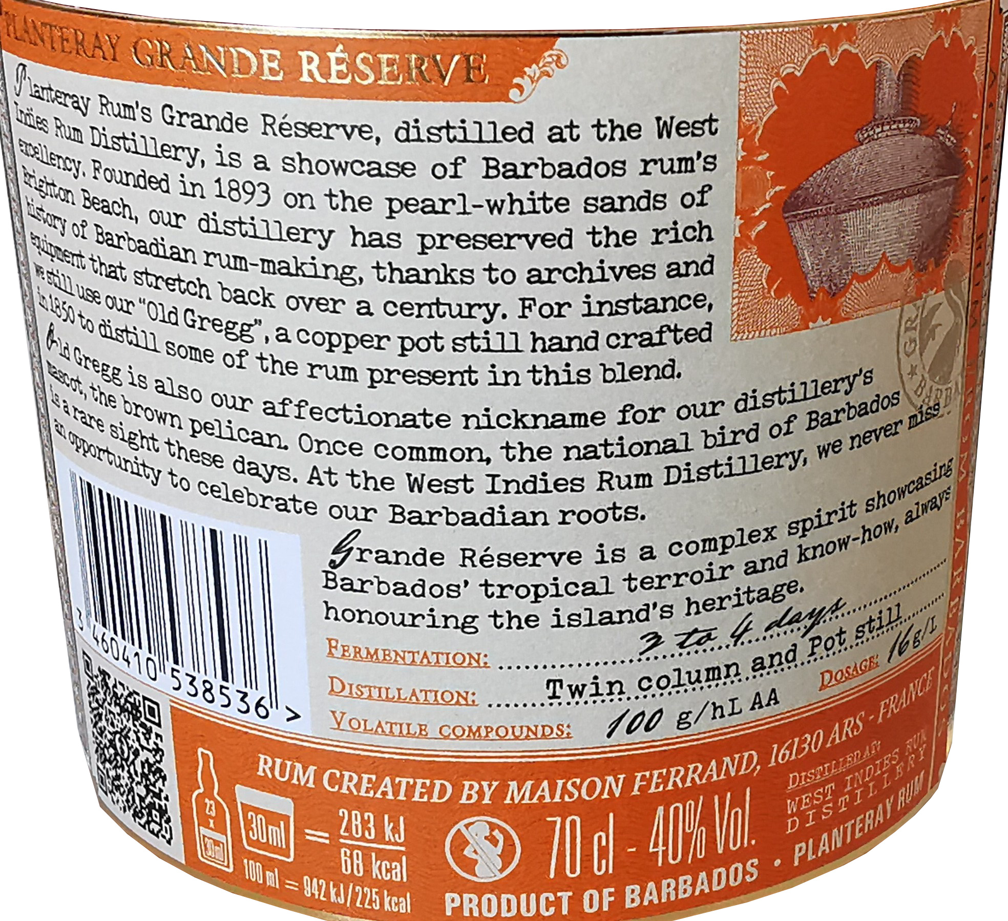 | Libellé | Rhum traditionnel Planteray Barbados Grande Réserve - Barbade, 40% vol. - 70 cl |