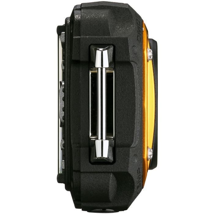 Ricoh WG-80. Type d'appareil photo: Appareil-photo compact, Mégapixel: 16 MP, Taille du capteur d'image: 1/2.3", Type de capteur: CMOS, Résolution d'image maximale: 4608 x 3456 pixels. La sensibilité ISO (max): 6400. Zoom optique: 5x, Zoom numérique: 7,2x, Longueur focale: 5 - 25 mm. Type HD: Full HD, Résolution vidéo maximale: 1920 x 1080 pixels. Taille de l'écran: 6,86 cm (2.7"). Mémoire interne: 64 Mo. Poids: 173 g. Couleur du produit: Noir, Orange