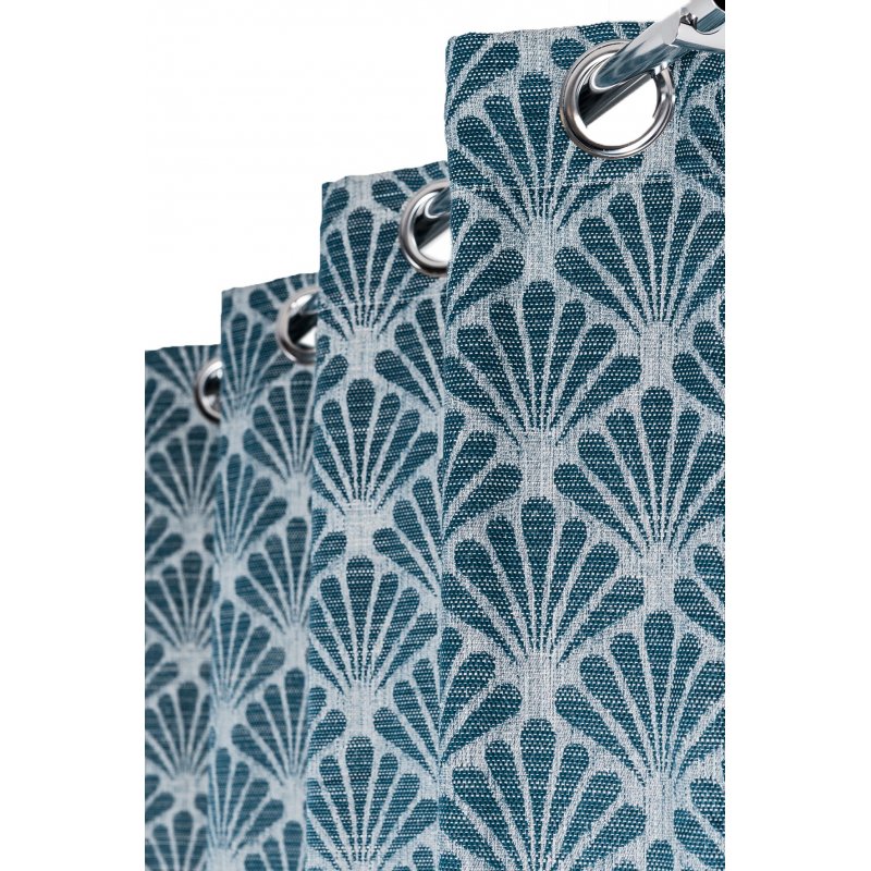 Rideau 140 x 240 cm à Oeillets Tamisant Jacquard Motif Coquille Effet Naturel Bleu Clair