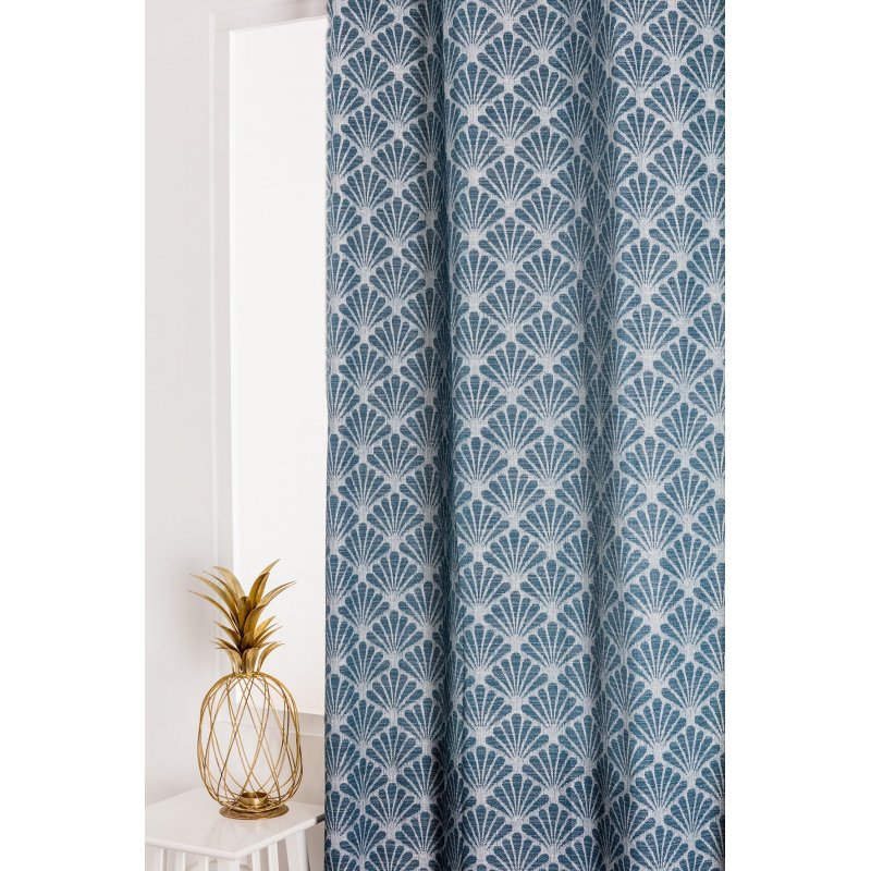 Rideau à oeillets tamisant Jacquard effet naturel avec un motif coquille de couleur bleu clair. Un rideau moderne de qualité pour votre salon ou chambre. Dimensions : 140 cm de largeur x 240 cm de hauteur. Vendu à l'unité.