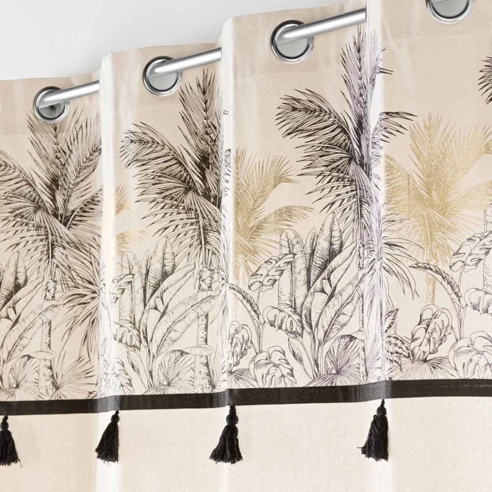 Rideau à œillets 140x240 PAPAYA à pompons et top métallisé