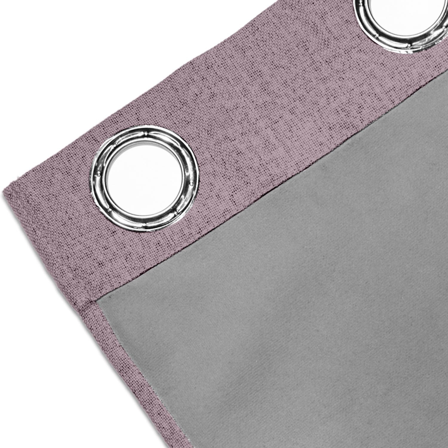 Rideau qui occulte à 100% la lumière grâce à sa doublure en PVC. Véritable élément décoratif grâce à son aspect chiné. Finition: 8 oeillets en métal inoxydables. Prêt à poser. Couleur: Rose. Composition: 100% polyester. Dimensions: 135x250 cm. Entretien: - Lavage en machine à 30 degrés.