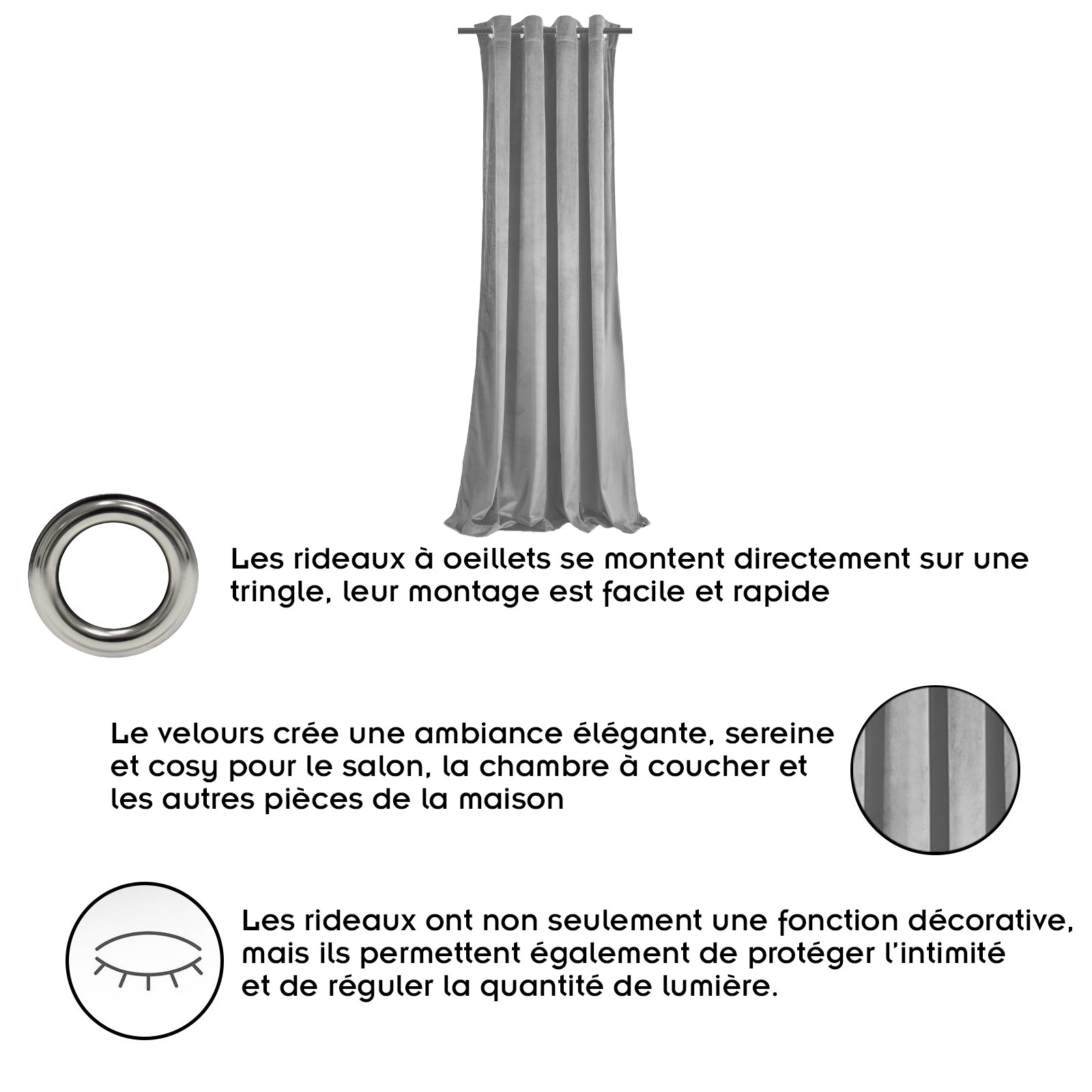| Libellé | Rideau à oeillets en velours occultant Gris 140x250 cm |
