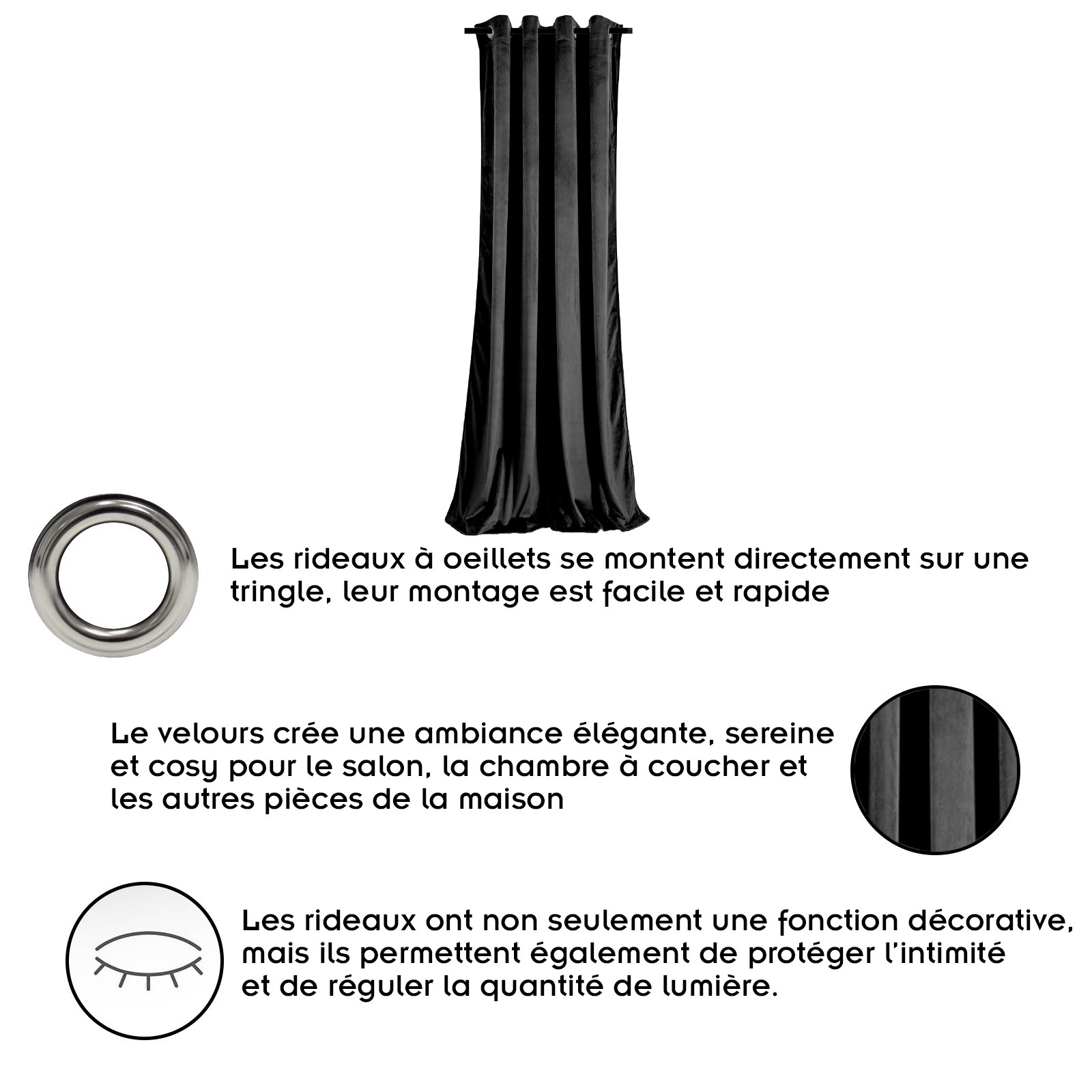 | Libellé | Rideau à oeillets en velours occultant Noir 140x250 cm |