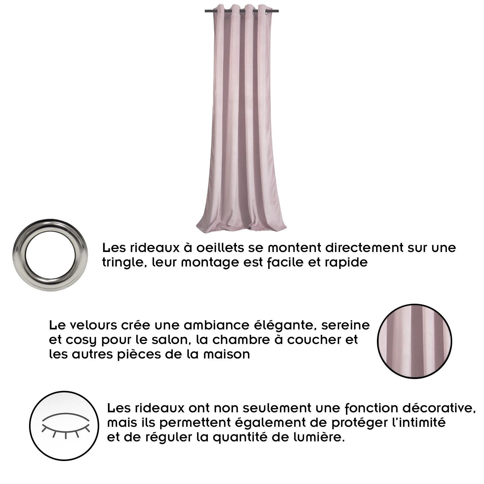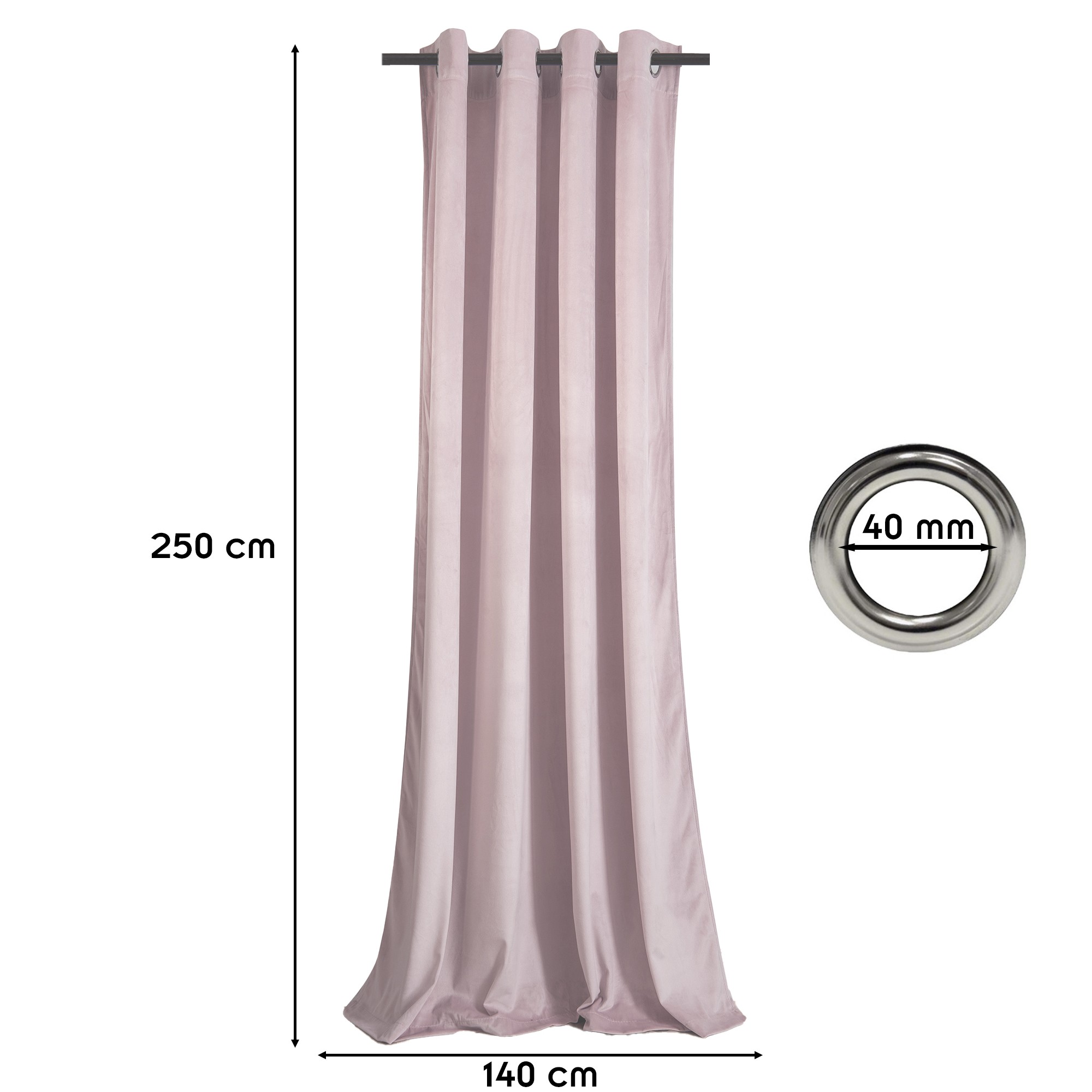 | Libellé | Rideau à oeillets en velours occultant Rose poudré 140x250 cm |