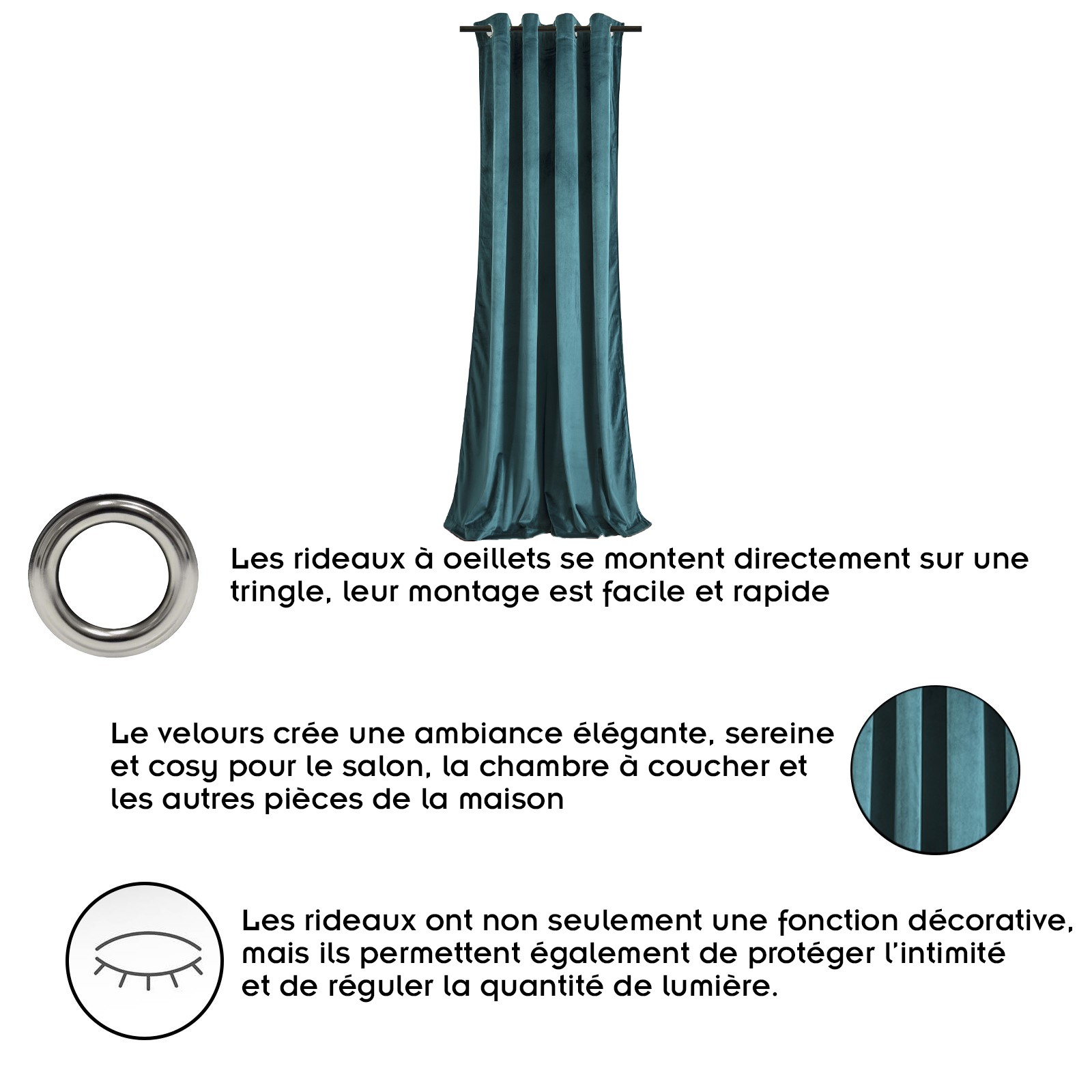 | Libellé | Rideau à oeillets en velours occultant Turquoise 140x250 cm |