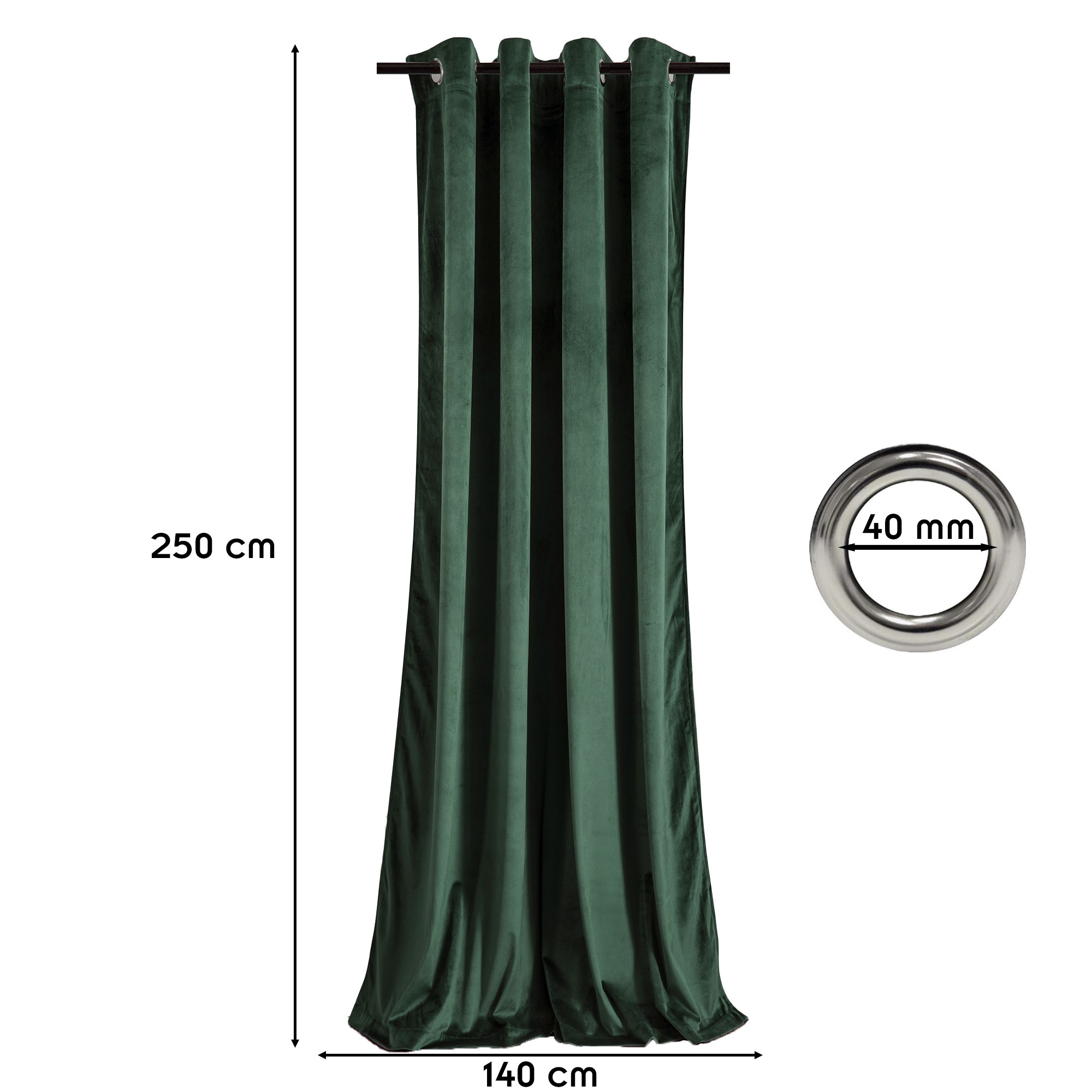 | Libellé | Rideau à oeillets en velours occultant Vert bouteille 140x250 cm |