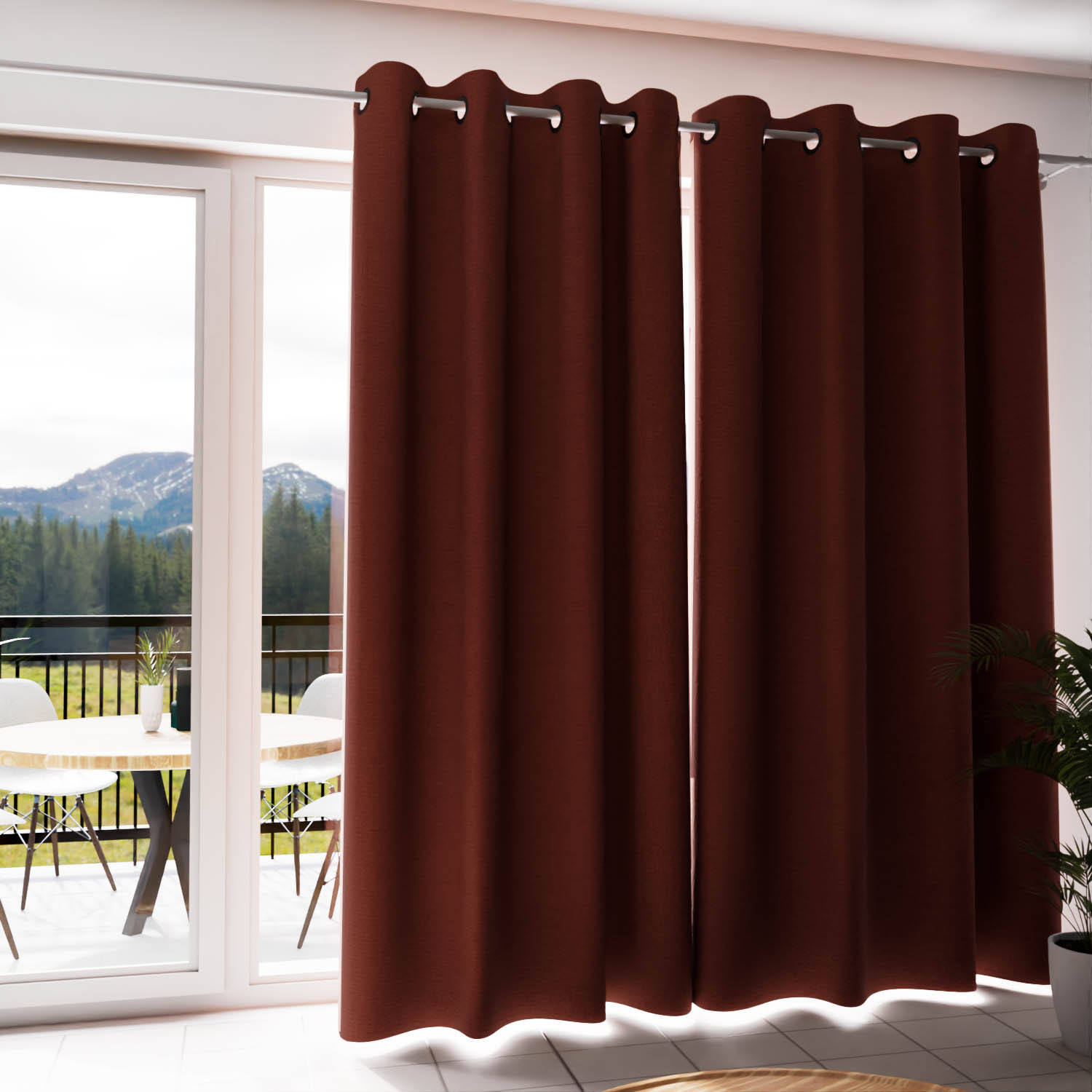 Ce rideau à oeillets ECLIPSE est idéal pour a la fois agir comme barrière thermique et phonique grâce sa doublure polaire ainsi que pour occulter à 100% la lumière grâce à sa doublure en PVC. Véritable élément décoratif grâce à son aspect chiné. Finition: 8 oeillets en métal inoxydables. Prêt à poser. Couleur: Brique. Composition: 100% polyester doublé PVC et Polaire. Dimensions: 135x250 cm. Entretien: - Lavage en machine à 30 degrés.