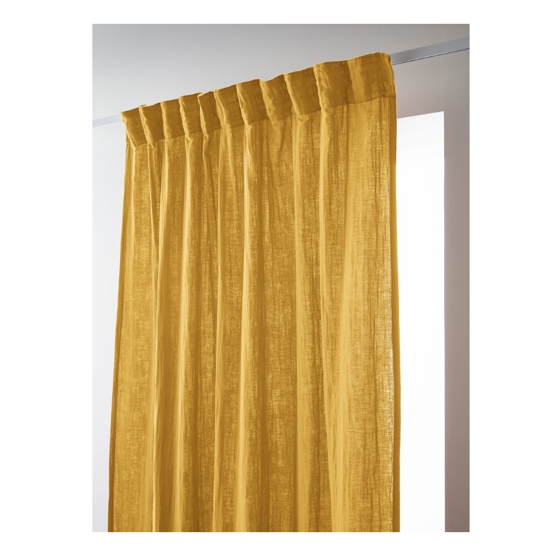 Rideau Gaia Une touche de charme dans votre interieur avec ce rideau disponible en plusieurs coloris Dimension: Largeur 140 x Hauteur 240 cm Matière: 100% double gaze de coton 125 gr/m² Finition: galon fronceur, point bourbon ton sur ton Entretien: Lavable à 40° C (avec des couleurs similaires) - Essorage doux - Sèche linge possible - Pas de repassage Utilisation possible: - Passe tringle - Tringle rail (crochets non inclus) Retrouvez aussi des Rideaux, des Coussins et des Plaids dans la même collection Les accessoires presents sur les visuels ne sont pas vendus avec le rideau