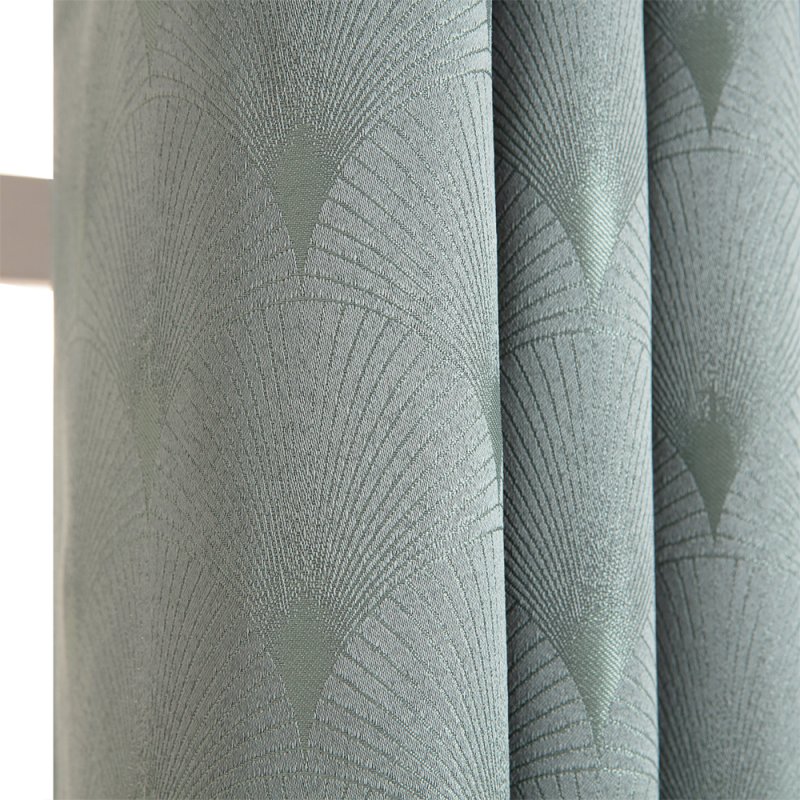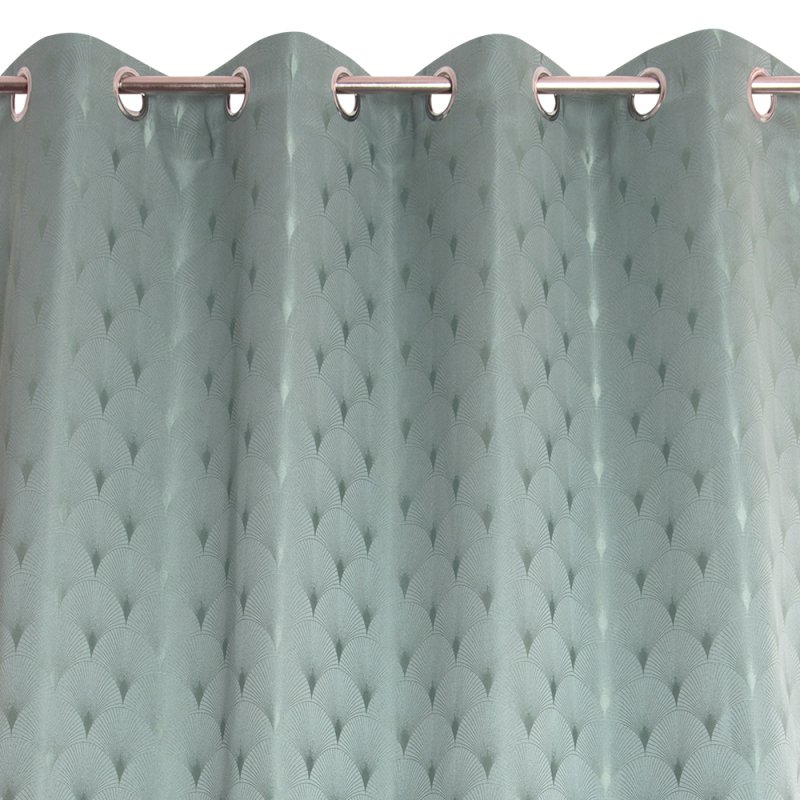 Rideau Jacquard 140 x 260 cm à Oeillets Motif Éventail Art Déco Ton sur Ton Vert Pâle
