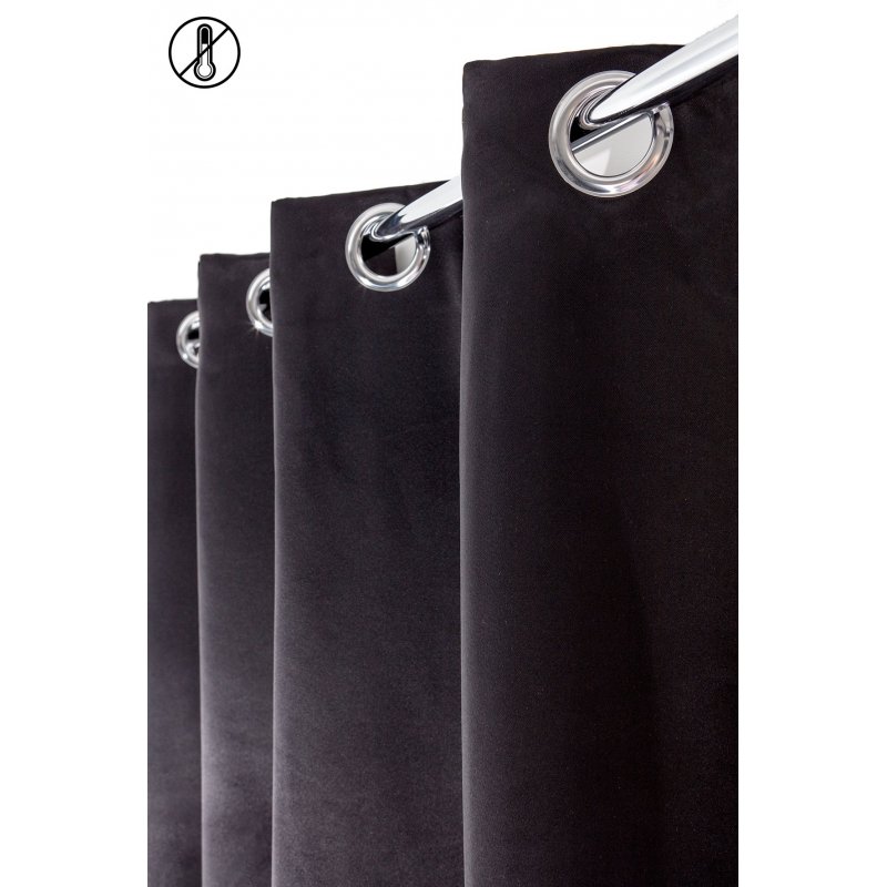 Rideau occultant à oeillets thermique stop froid uni de couleur noir. Profitez de la chaleur de votre intérieur grâce à ce rideau anti-froid doublé polaire.