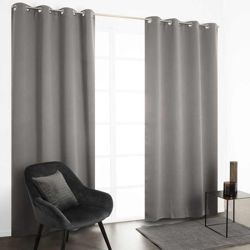 Rideau Occultant 135 x 240 cm à Oeillets Uni Gris Moyen