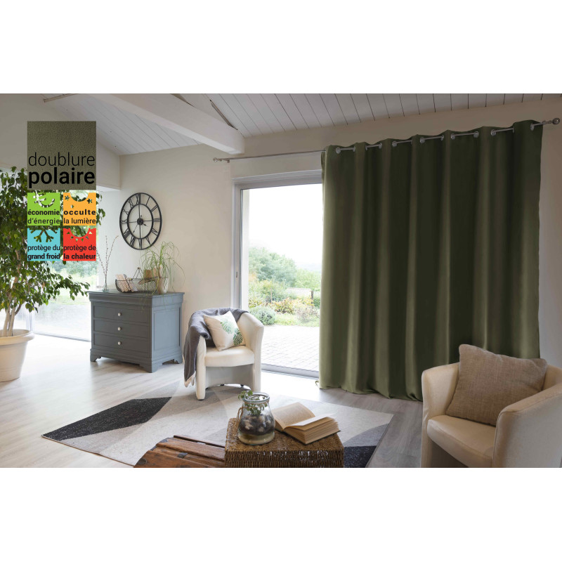 - Rideau occultant thermique doublé polaire à 8 œillets.