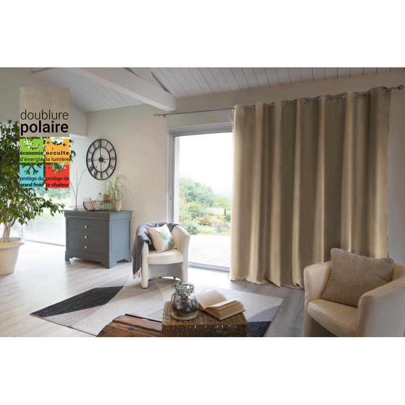 - Rideau occultant thermique doublé polaire à 8 œillets.