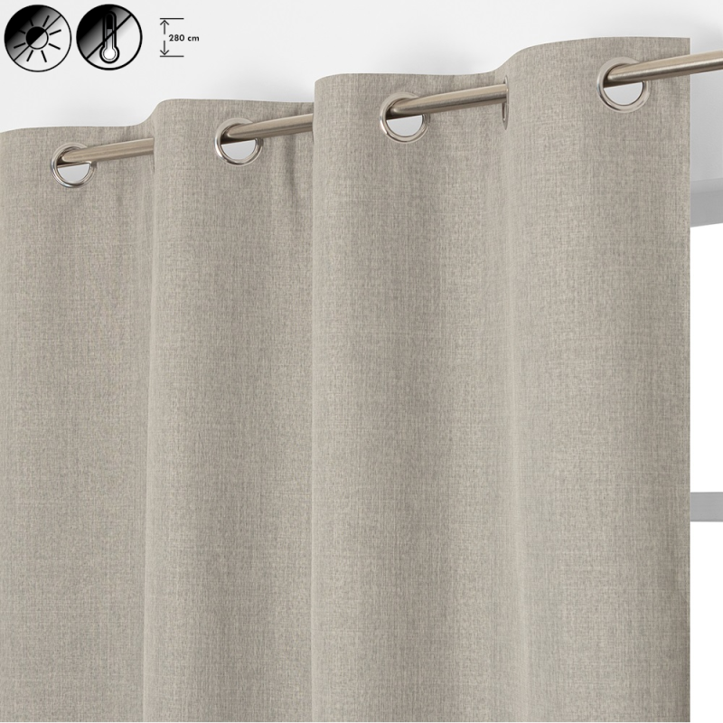 Rideau Occultant Thermique 135 x 280 cm Grande Hauteur à Oeillets Chambray Gris