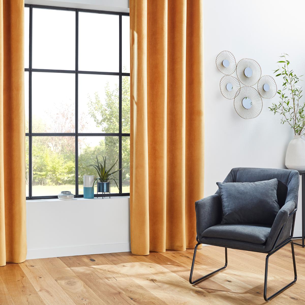 Rideau occultant velours Otto ocre 140x260 Atmosphera - Jaune moutarde