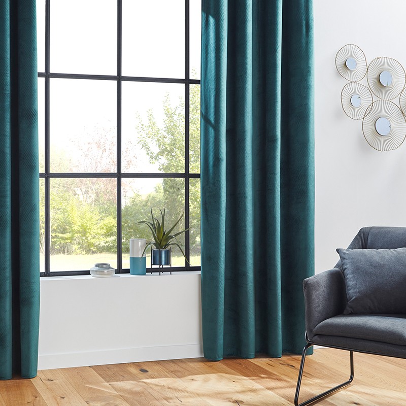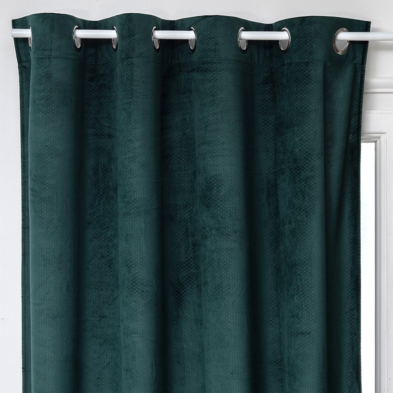 Rideau occultant en velours 140x260 cm parfait pour vous protéger de la lumière. Son coloris vert cèdre et ses motifs en relief apporteront un style très tendance à votre intérieur. Ne laisse pas passer la lumière une fois fermés. Accroche par 8 œillets. Barre et attaches non incluses. Hauteur : 260 cm - Largeur : 140 cm - Poids : 1.11 Kg - Couleur : Vert cèdre - Matière : Polyester