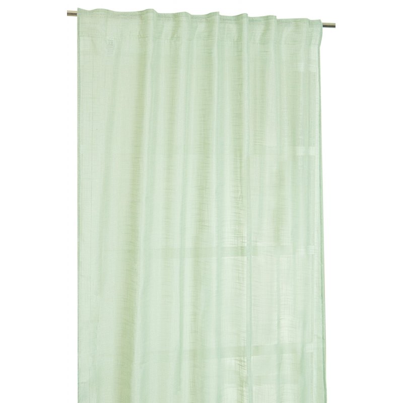 Rideau tamisant à galon fronceur et pattes cachées grande hauteur effet lin uni vert d'eau. Un rideau d'une couleur raffinée pour fenêtres de très grande hauteur.