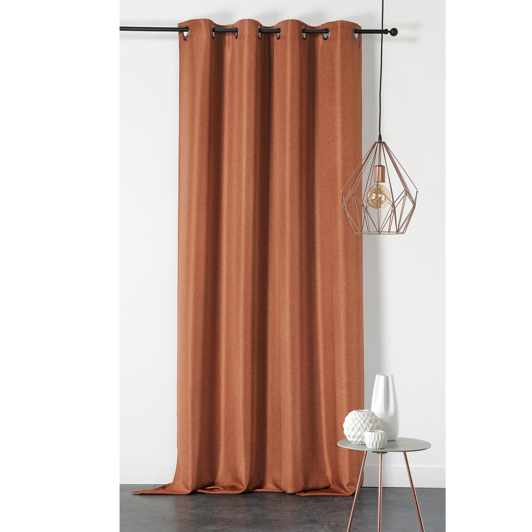 Ce rideau uni et tamisant apportera une note "masculine" à votre déco. Un côté épuré émane de ce tissu au. coloris marron. Idéal pour mettre en valeur un bureau, une pièce à vivre ou une chambre à coucher. Lavable en mlachine à 30°C. Il existe du tissu au mètre assorti dans cette même gamme. . Caractéristiques:. Composition : 100% polyester . Coloris : marron. Laize (largeur) : 150 cm . Poids : 205g/m². Finition : 8 oeillets ronds en coloris canon de fusil avec une bande de renfort. Entretien : lavage en machine à 30°. . . Vendu à l'unité. Prêt à poser