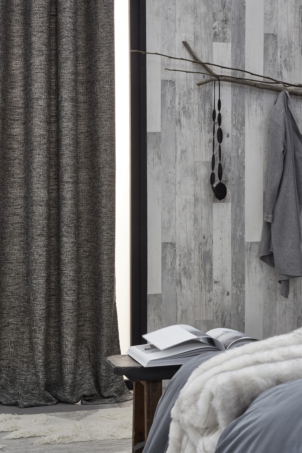 On aime l'aspect laineux de ce rideau au toucher lourd développé dans un coloris intemporel.