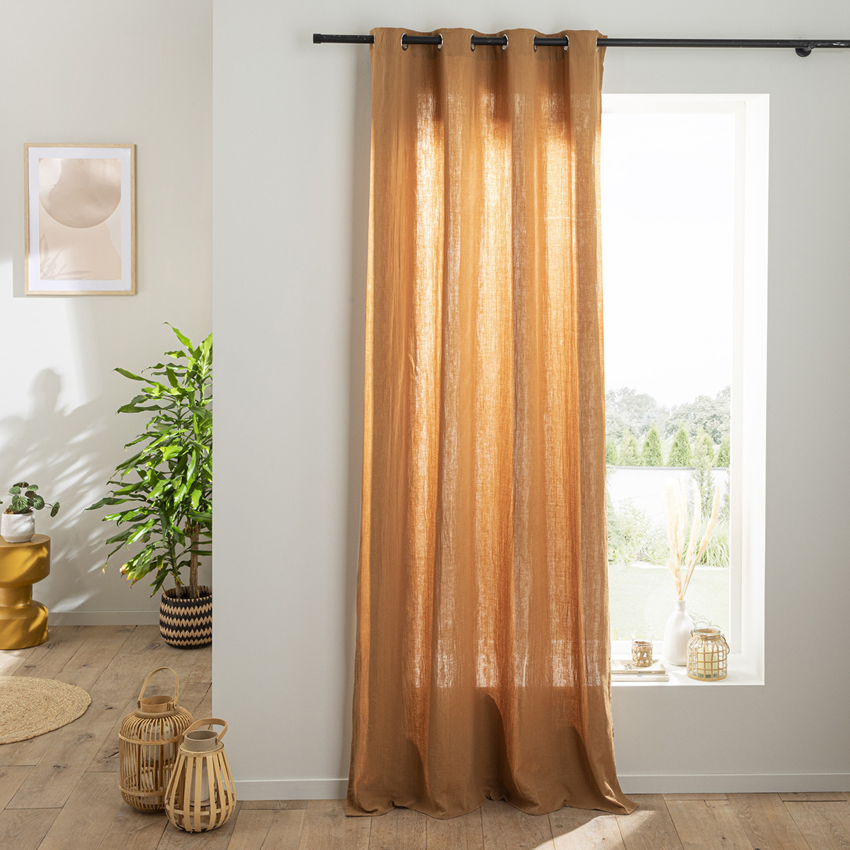 Rideau en gaze de coton vendu à l'unité, monté sur œillet en métal 140x260. Légèrement opaque, ce rideau tombe parfaitement. Un rideau monté sur œillets passe tringle pour une installation facile sur la barre à rideaux.