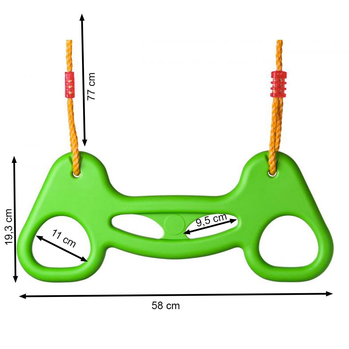 Cette balançoire voltige dispose de 4 poignées ; 2 positionnées au centre et 2 disposées aux extrémités de la balançoire (facilite la prise en main de la balançoire). À utiliser en intérieur ou en extérieur.