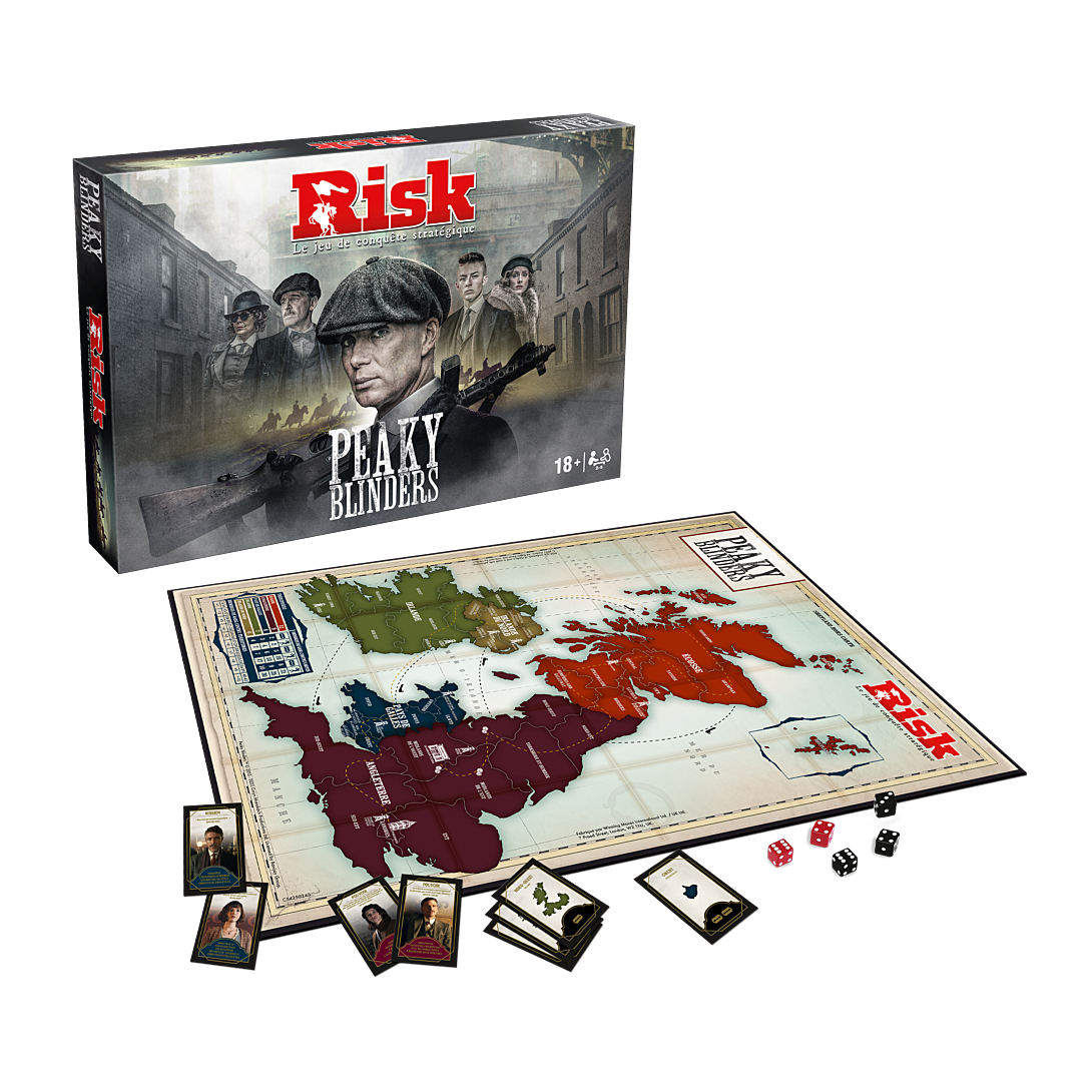 Dans cette édition du Risk Peaky Blinders, saga épique, qui relate l'histoire d'une famille de gangsters dans les rues impitoyables de Birmingham et au-delà, incarnez l'un des 5 chefs de gangs, Thomas Shelby, Billy Kimber, Aflfie Solomons, Charles "Darby" Sabini ou Captain Swing et luttez pour devenir l'organisation criminelle la plus puissante du Royaume-Uni et d'Irlande en conquérant un maximum de territoires!