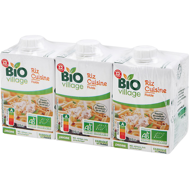 Préparation culinaire à base de riz (10 %), stérilisée UHT - Produit issu de l’agriculture biologique BIO VILLAGE