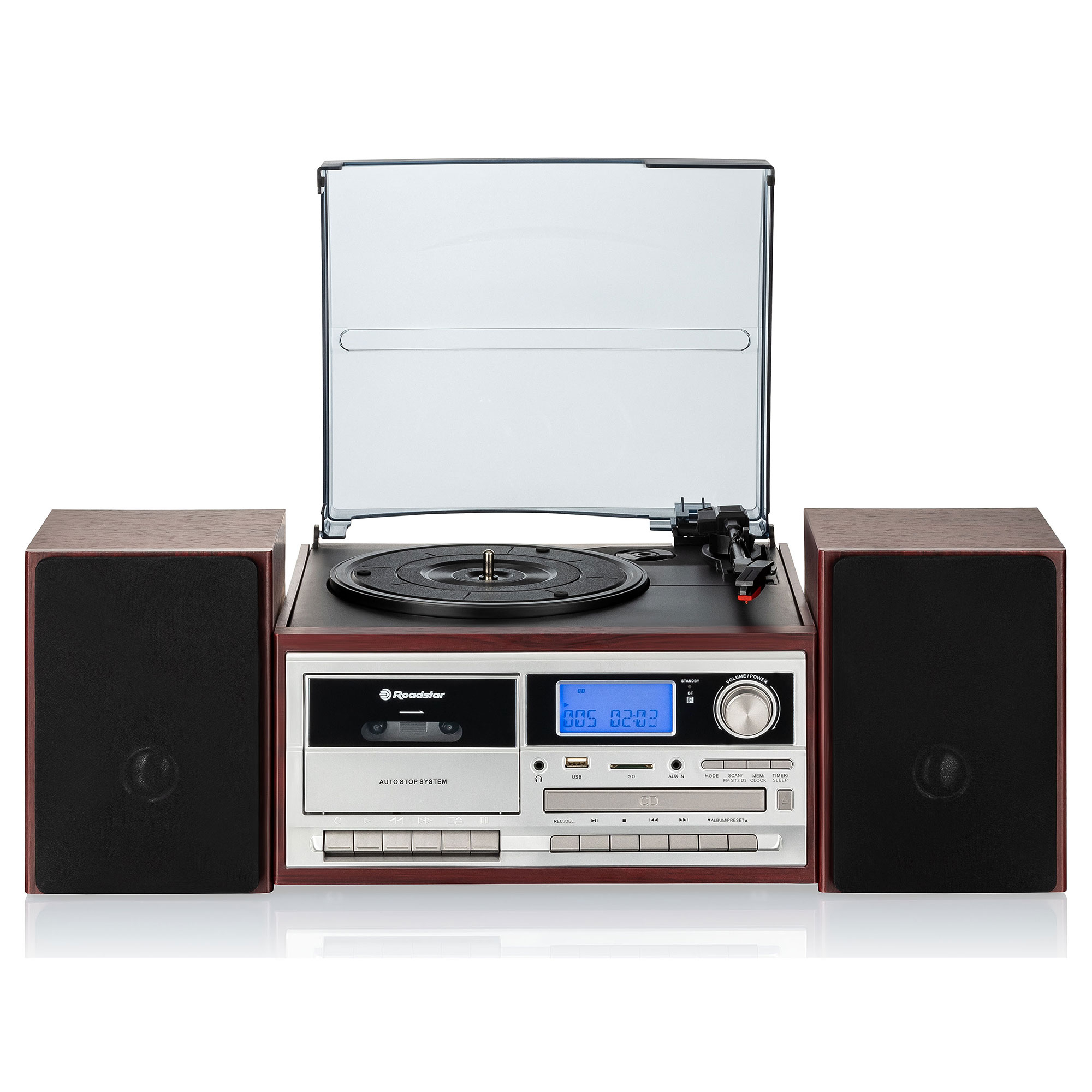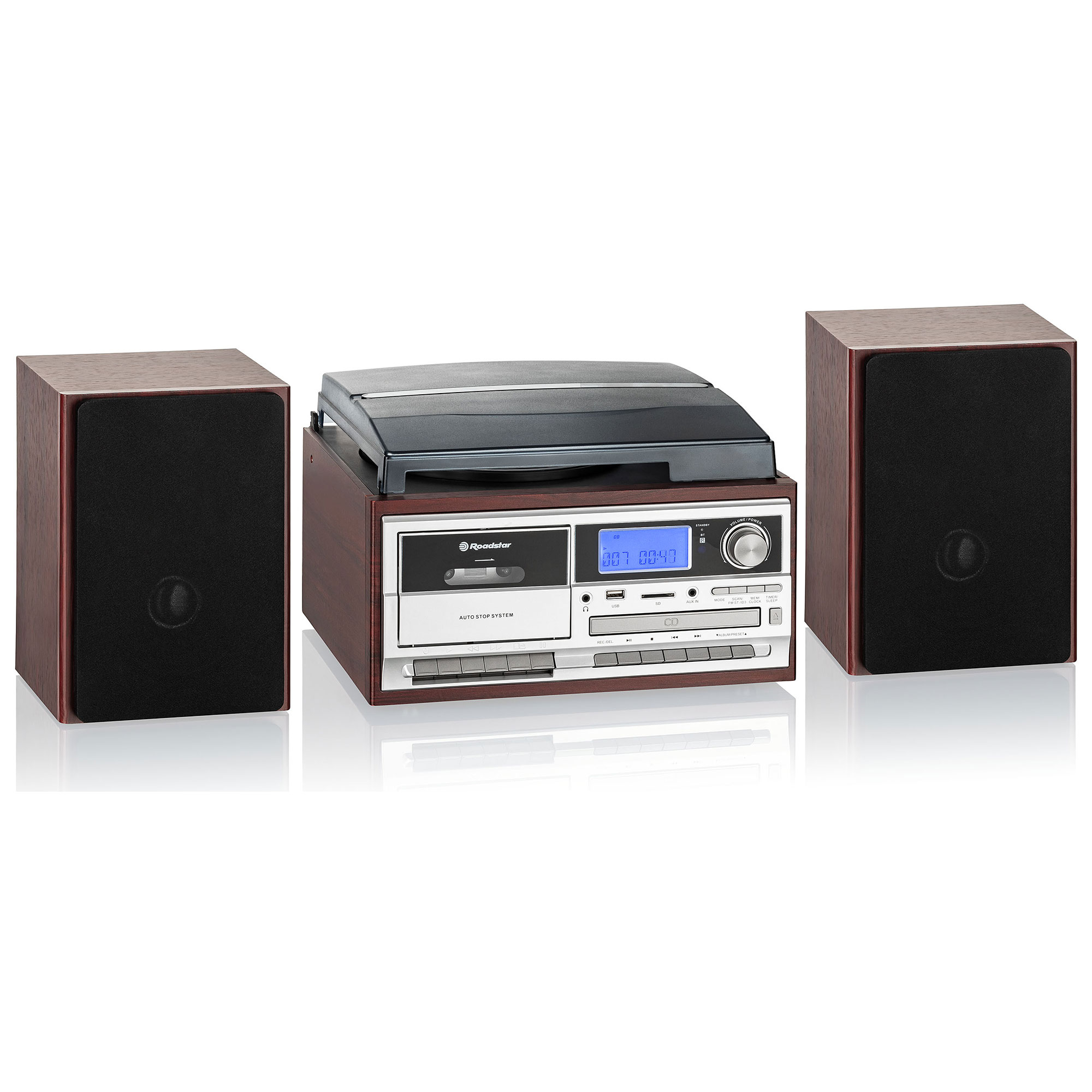 Roadstar HIF-8892EBT ensemble audio pour la maison 8 W Cherry (fruit), Argent, Bois