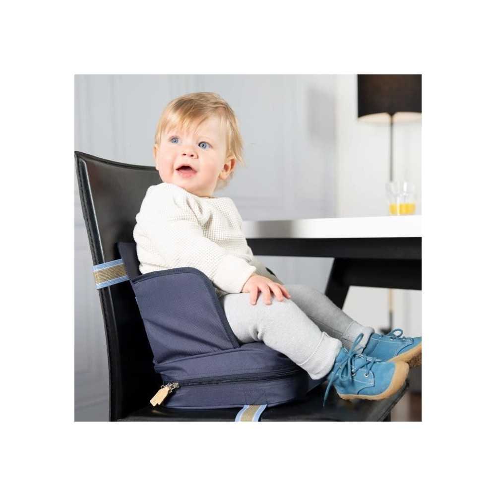 Conçu pour enfants capables de s'asseoir seuls, de 6 à 36 mois (jusqu'à 15 kg). Sangles réglables permettant la fixation sur la plupart des chaises standards, adapté pour la maison, le restaurant ou le voyage.