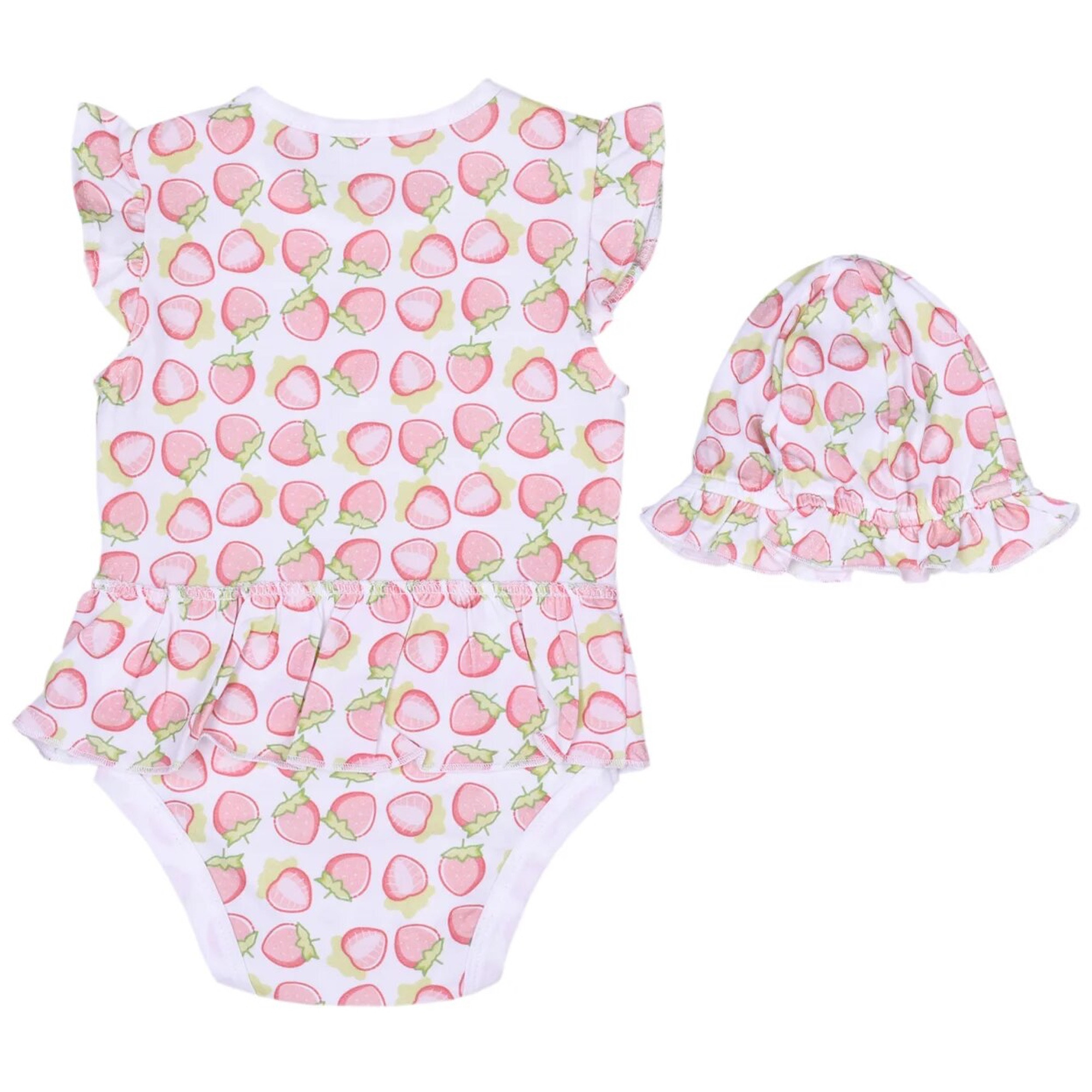 | Libellé | Robe body et chapeau en coton bio, Fraise |