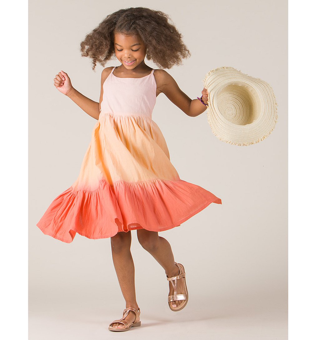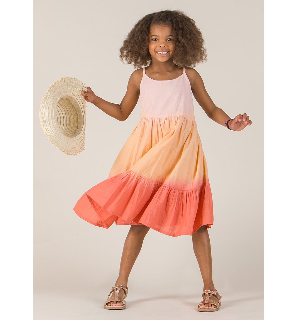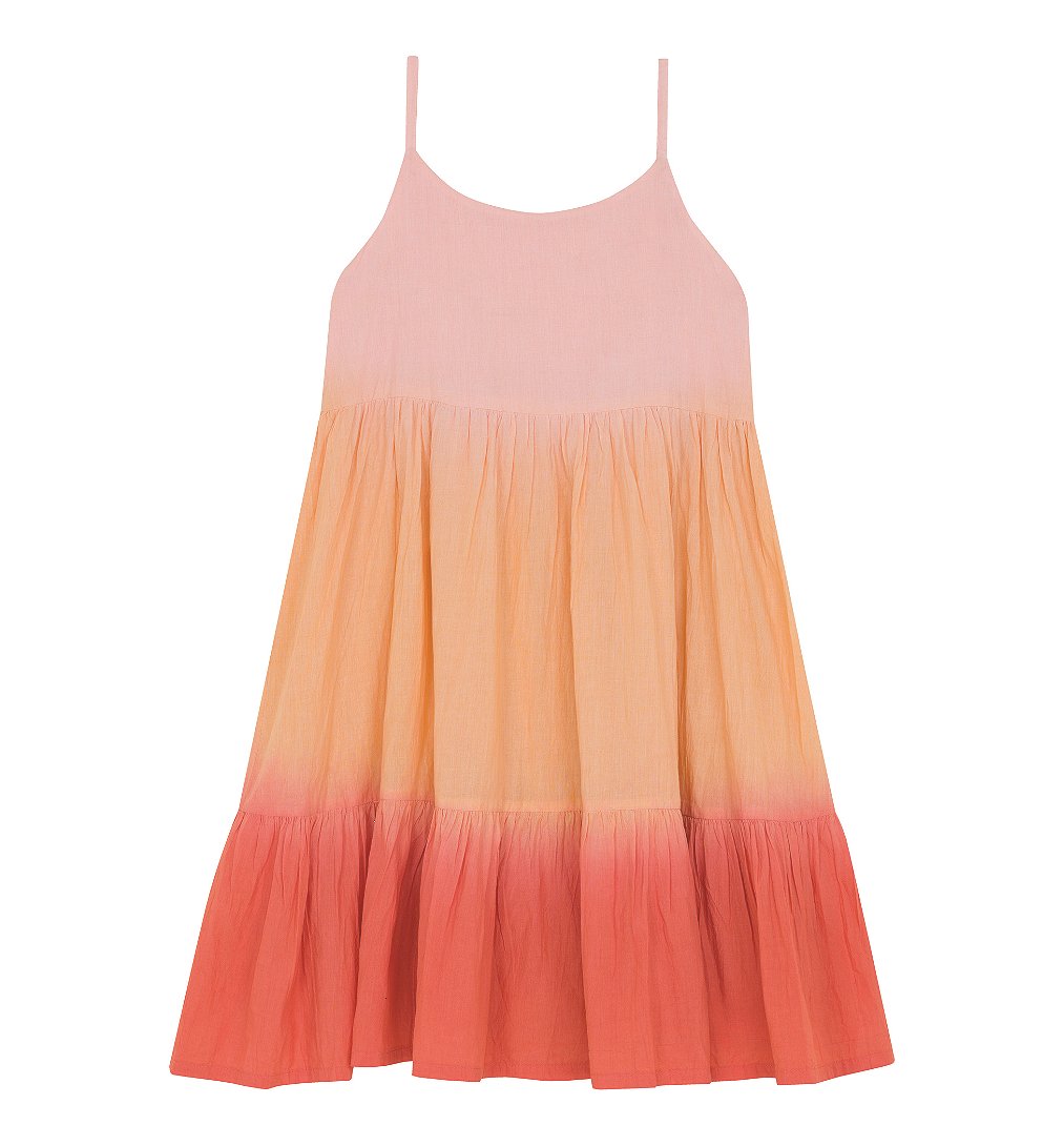 Robe légère en voile de coton à fines bretelles en coloris dégradés. La robe dispose d'une fermeture éclair sur le coté pour pouvoir s'habiller facilement.
