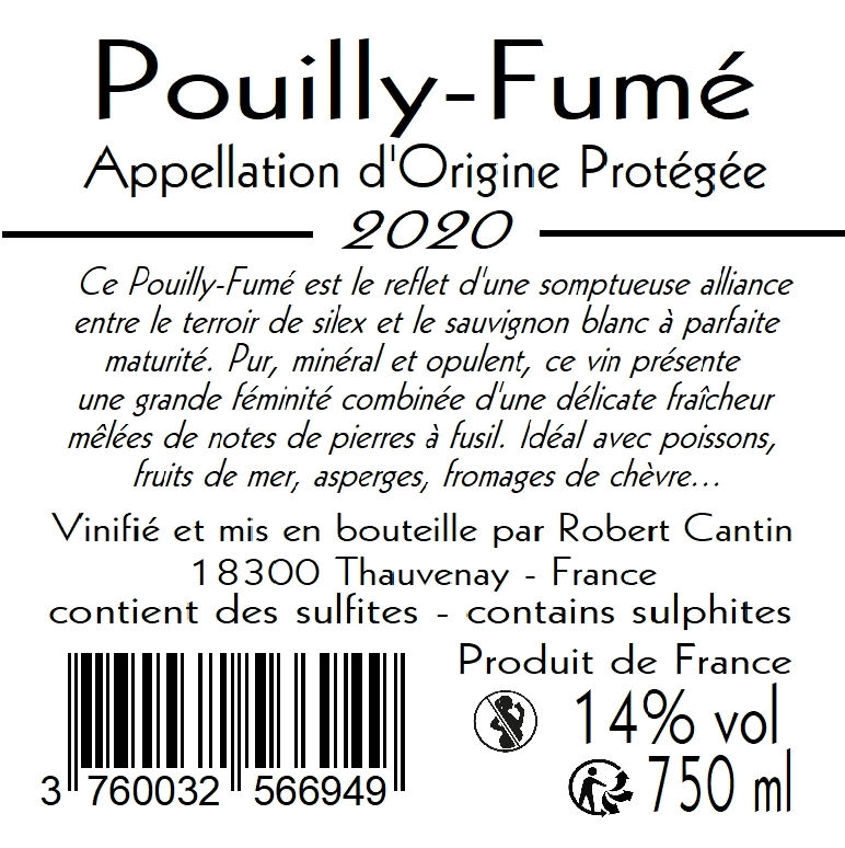 | Libellé | Robert Cantin Silex, 2020 - Pouilly-Fumé AOP - Blanc Sec - 75 cl |